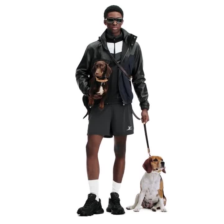 Running shorts bermodel double layer ini memadukan sentuhan fashion dan aspek fungsional, melalui desain khas celana pendek lari yang dilengkapi lapisan pendukung di bagian dalamnya. Celana ini terasa nyaman dipakai dengan bahan technical fabric elastis empat arah yang halus dan cepat kering. Corak tulisan Louis Vuitton menghiasi bagian pinggang yang elastis, sementara bagian kaki kiri disertai ornamen LV yang reflektif. Celana ini dapat dipadukan dengan T-shirt dan track top untuk tampilan yang serasi.
