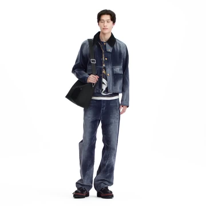Kaos berlengan pendek dengan leher model crew neck ini menampilkan motif LV Emblem yang terinspirasi dari kemegahan rumah bangsawan Inggris. Rajutan Jacquard yang kaya detail pada dasar warna biru tua memadukan Louis Vuitton signature dengan elemen heraldik, seperti pita, mahkota, seekor anjing, dan rubah. Atasan elegan ini menyempurnakan tampilan kasual.