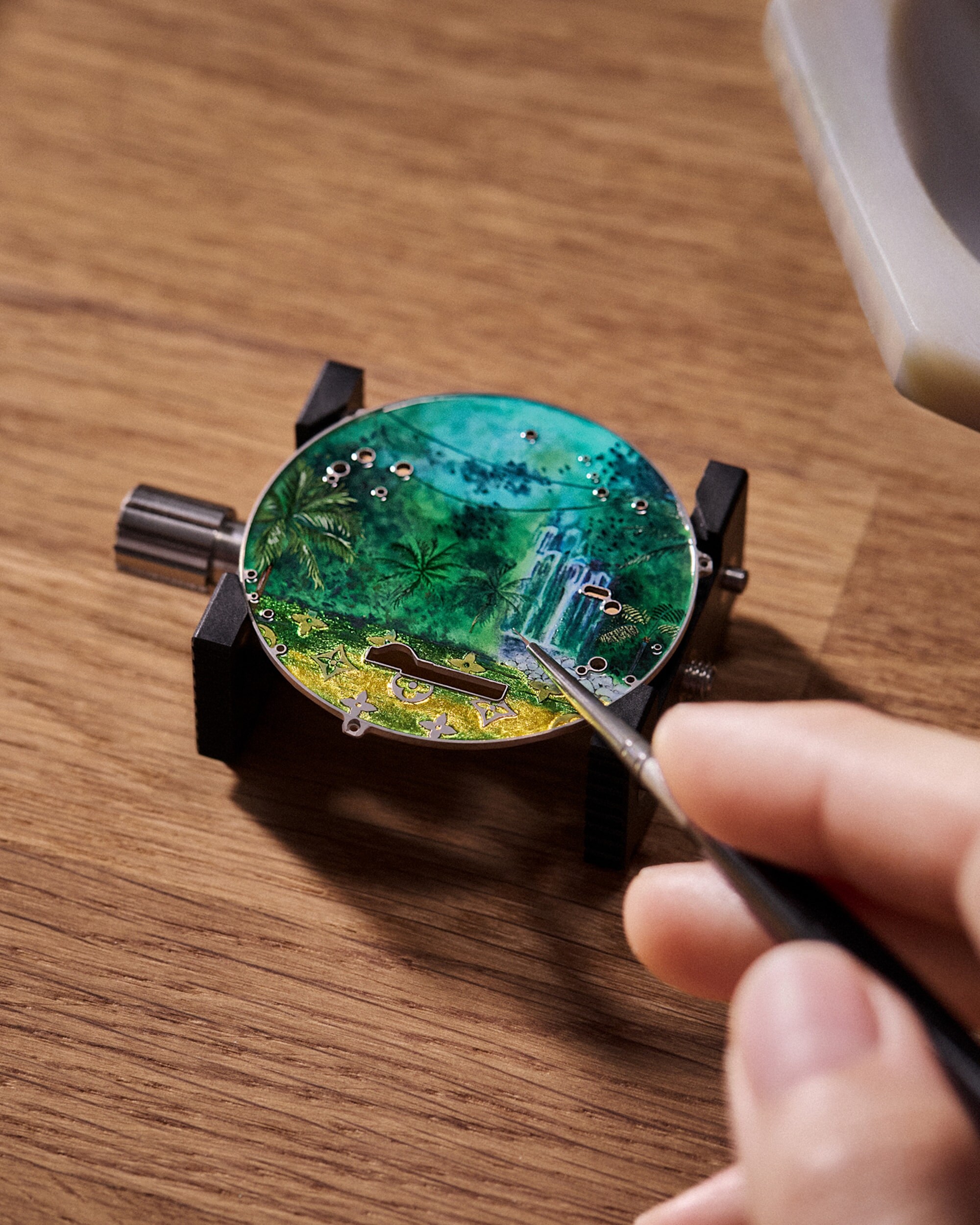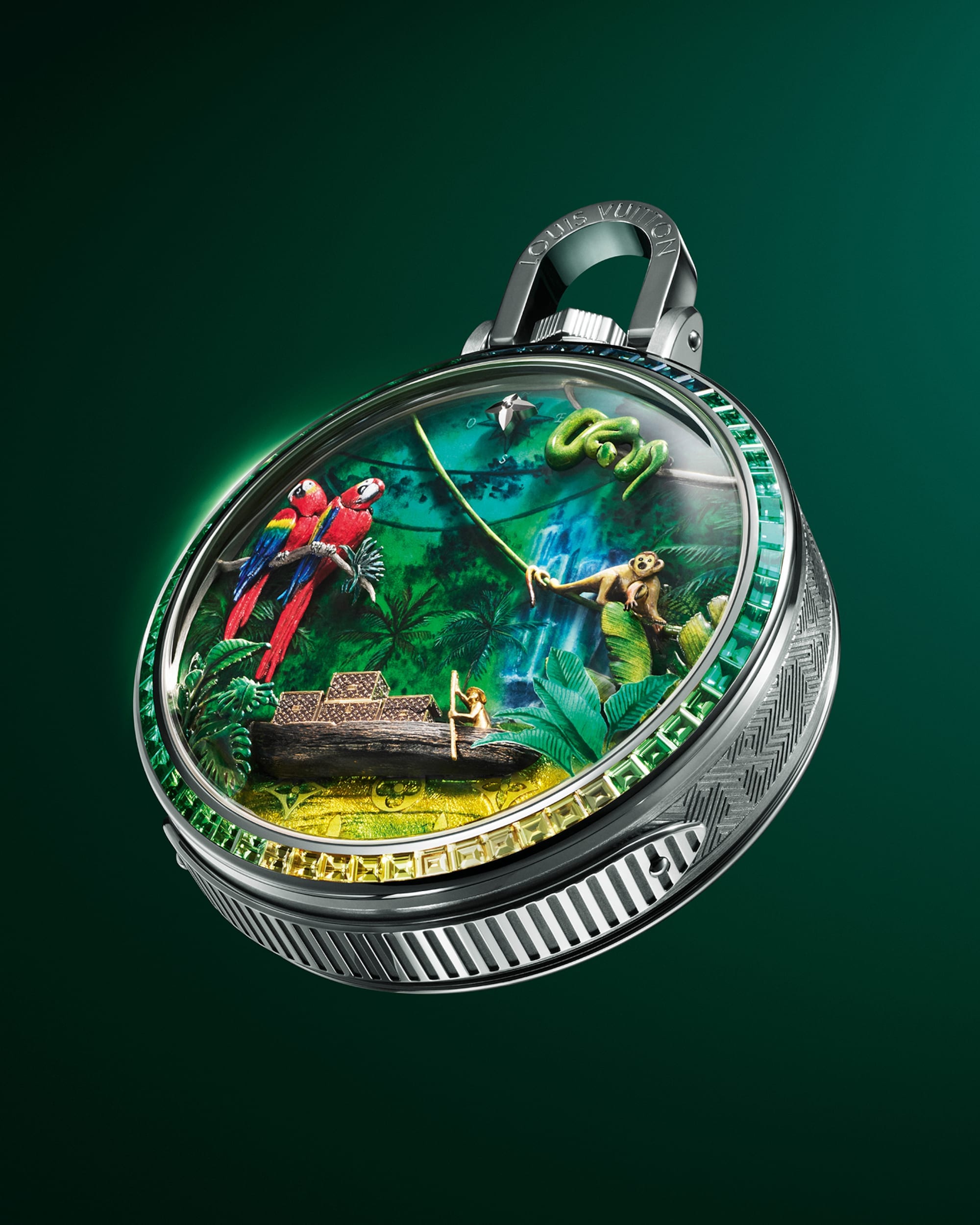 Dalam perwujudan kreativitas yang istimewa, Louis Vuitton menjelajah hingga ke pusat hutan hujan Amazon untuk memperkenalkan salah satu pocket watch paling kompleks yang pernah diciptakan, Escale en Amazonie. Menghadirkan perspektif ganda yang unik, pocket watch yang menarik perhatian ini menampilkan tujuh animasi lanskap rimbun pada dial, sementara case back transparannya memperlihatkan keindahan mekanis: caliber LFT AU14.03 automaton dan minute repeater, dengan sentuhan akhir artistik yang luar biasa.