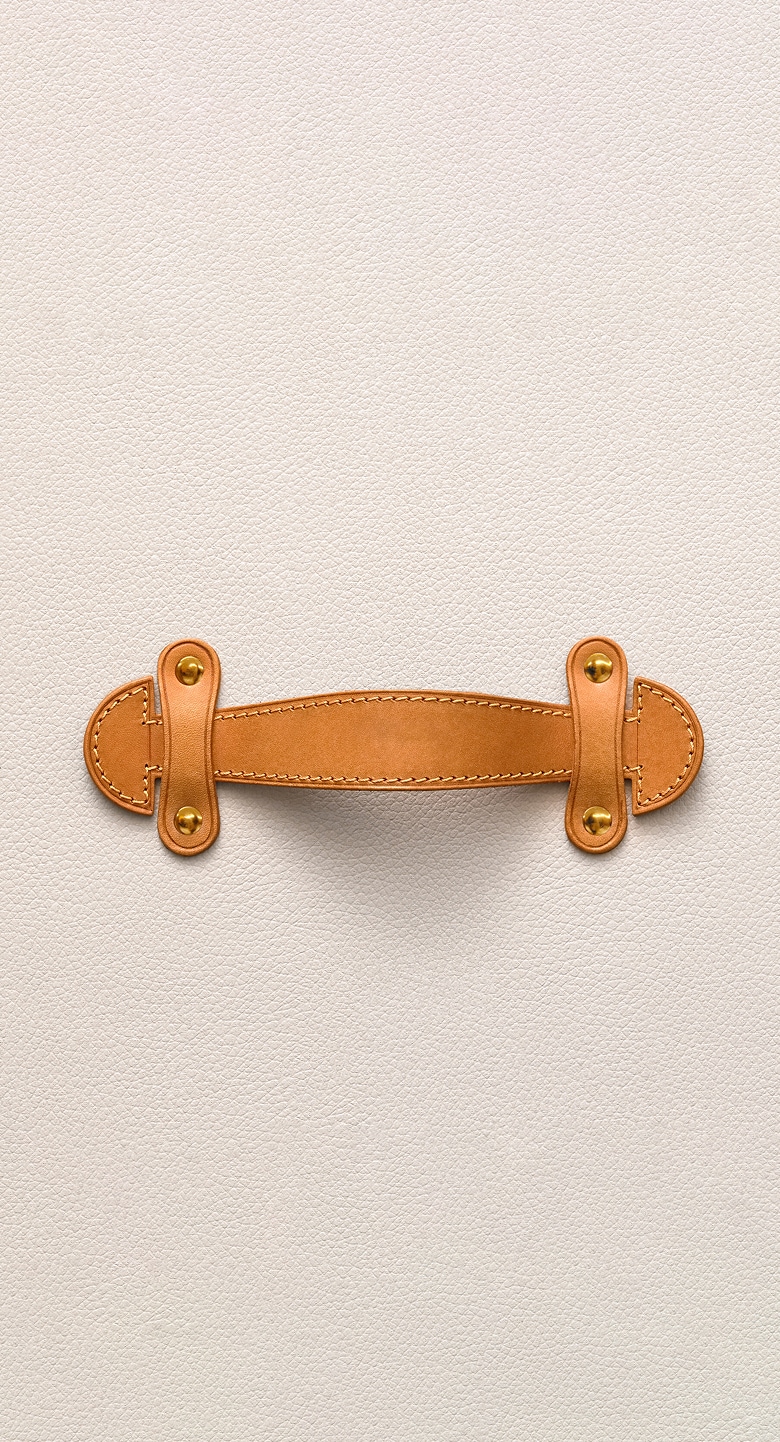 路易威登采用实用、防水且洁净无味的设计革新了制箱工艺。圆顶硬箱具有弧形结构,可有效疏导雨水,防止湿气积聚于箱体表面。同时,摒弃皮革材质,品牌首用采用粘合工艺稳固的 Trianon 灰色帆布,显著提升了旅行箱的耐用性。