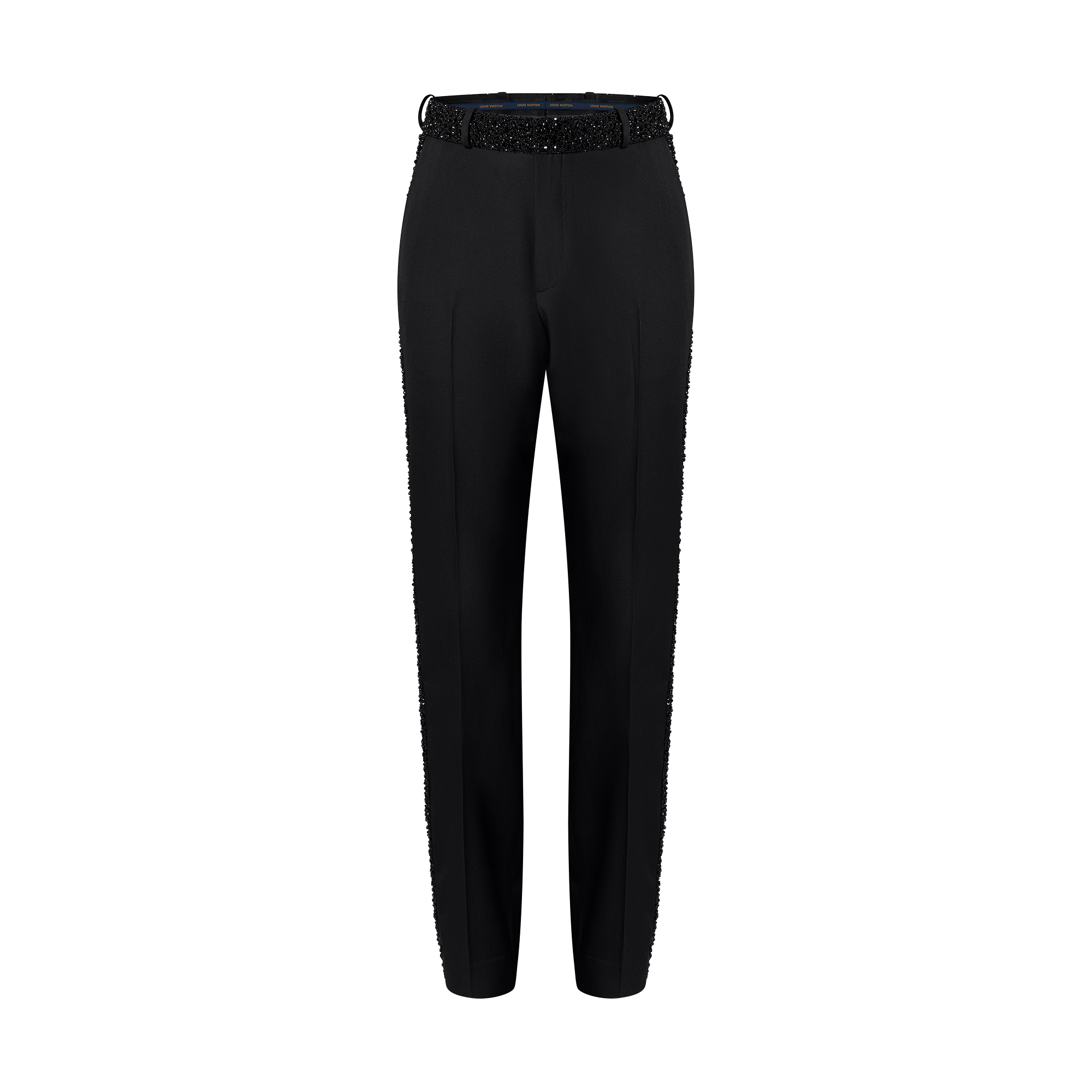 从商务场合的精裁长裤、闲暇时光的牛仔裤、休闲裤和工装裤到居家小憩的运动裤,路易威登男士裤装系列涵盖各式需求。细致挑选的面料经过匠心剪裁成就摩登丹迪廓形,展现男装创意总监 Pharrell Williams 的鲜明风格。