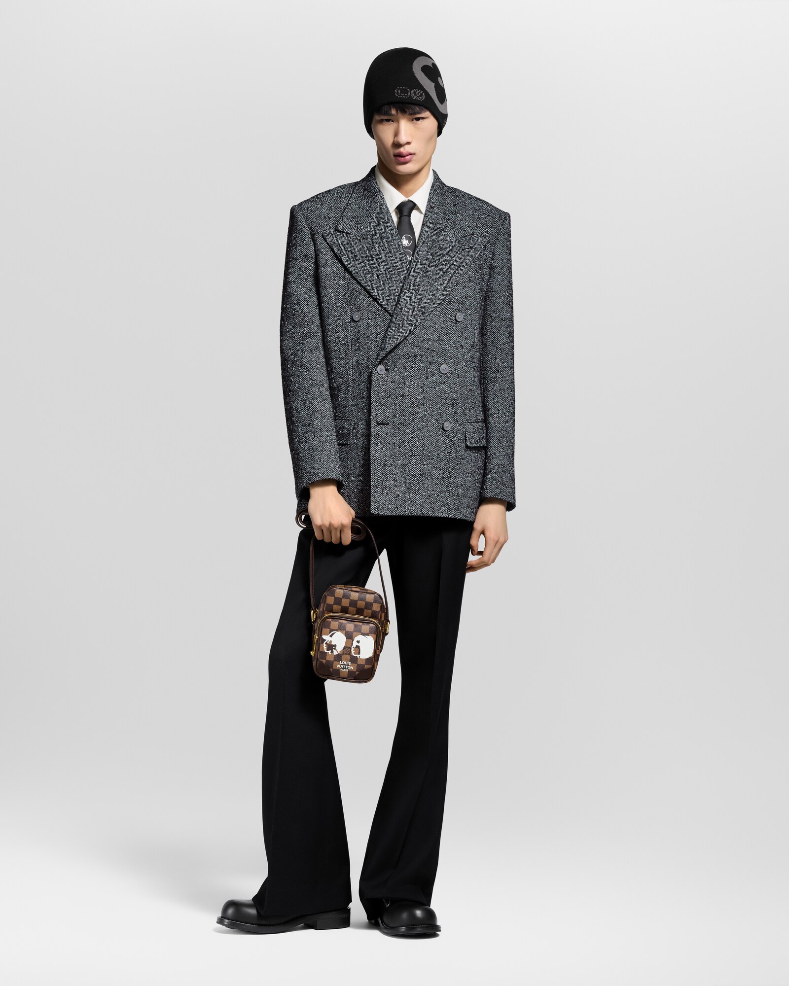 本款 Amazone 斜挎包取材 Damier Phriendship 帆布,以 Pharrell Williams 与日本设计师 Nigo 的肖像图案见证 Damier Ebene 印花的崭新演绎。拉链前袋与主隔层实现功能考量。