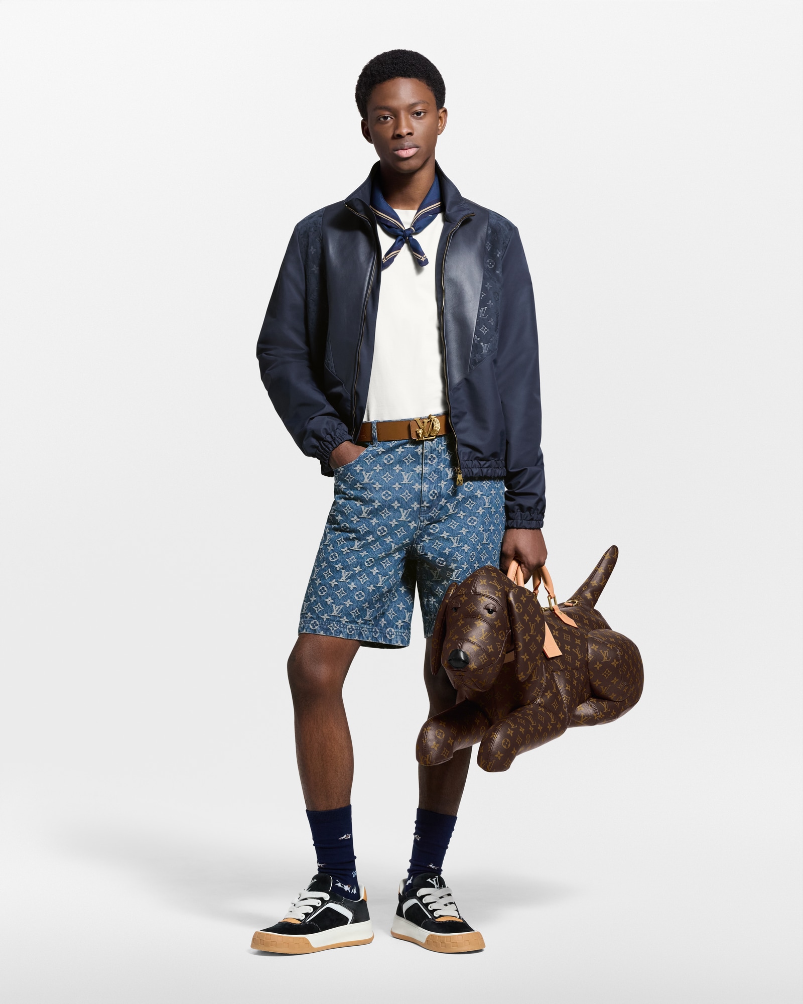Animal Blason 袜子于匠心打造,为深邃棉质混纺点缀迷你动物图案,其间融入针织 LV 字母和手写体 Vuitton 标识,成就动物爱好者的欢欣佳礼。