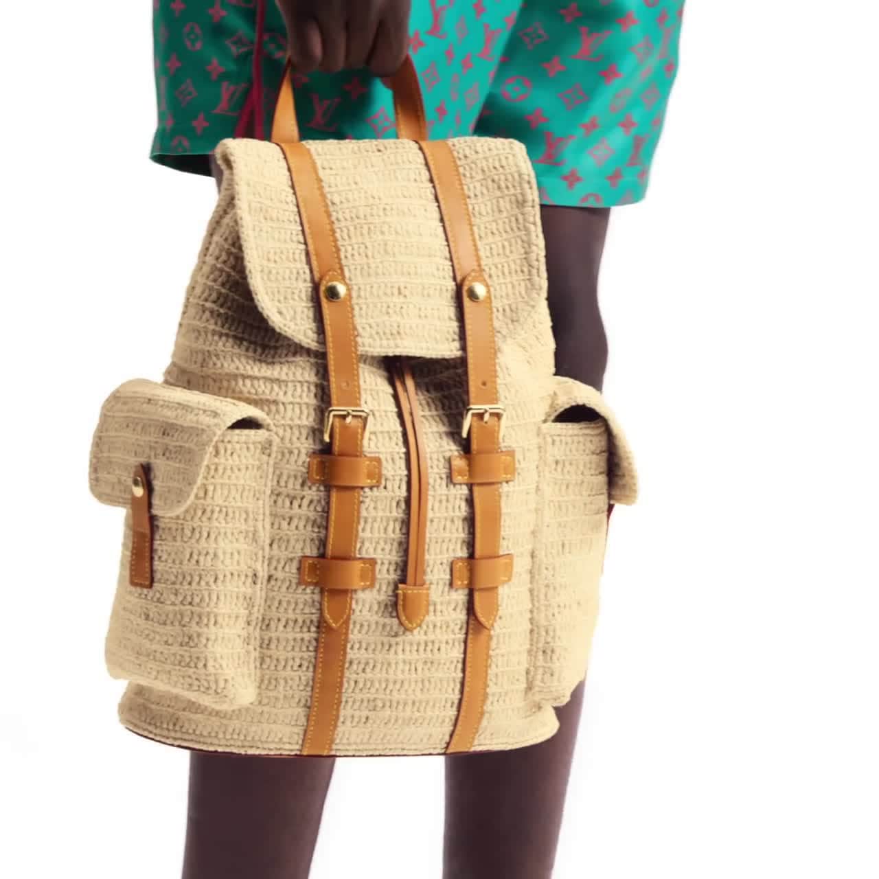 本款 Christopher 小号双肩包采用柔韧拉菲草纤维编织经典构型,以精湛匠艺赋予每件成品别样风采。侧袋和皮革饰边流露夏日气息。