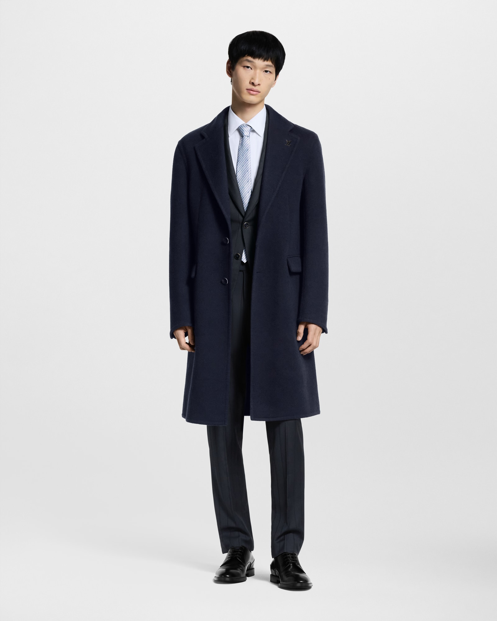 本款直筒裤重绎正装元素,为细腻绵羊毛铺陈经典条纹图案,展现微型 LV 标识与 LV Stripes 提花的创意相融。可与同款 Pont Neuf 夹克共筑利落造型。