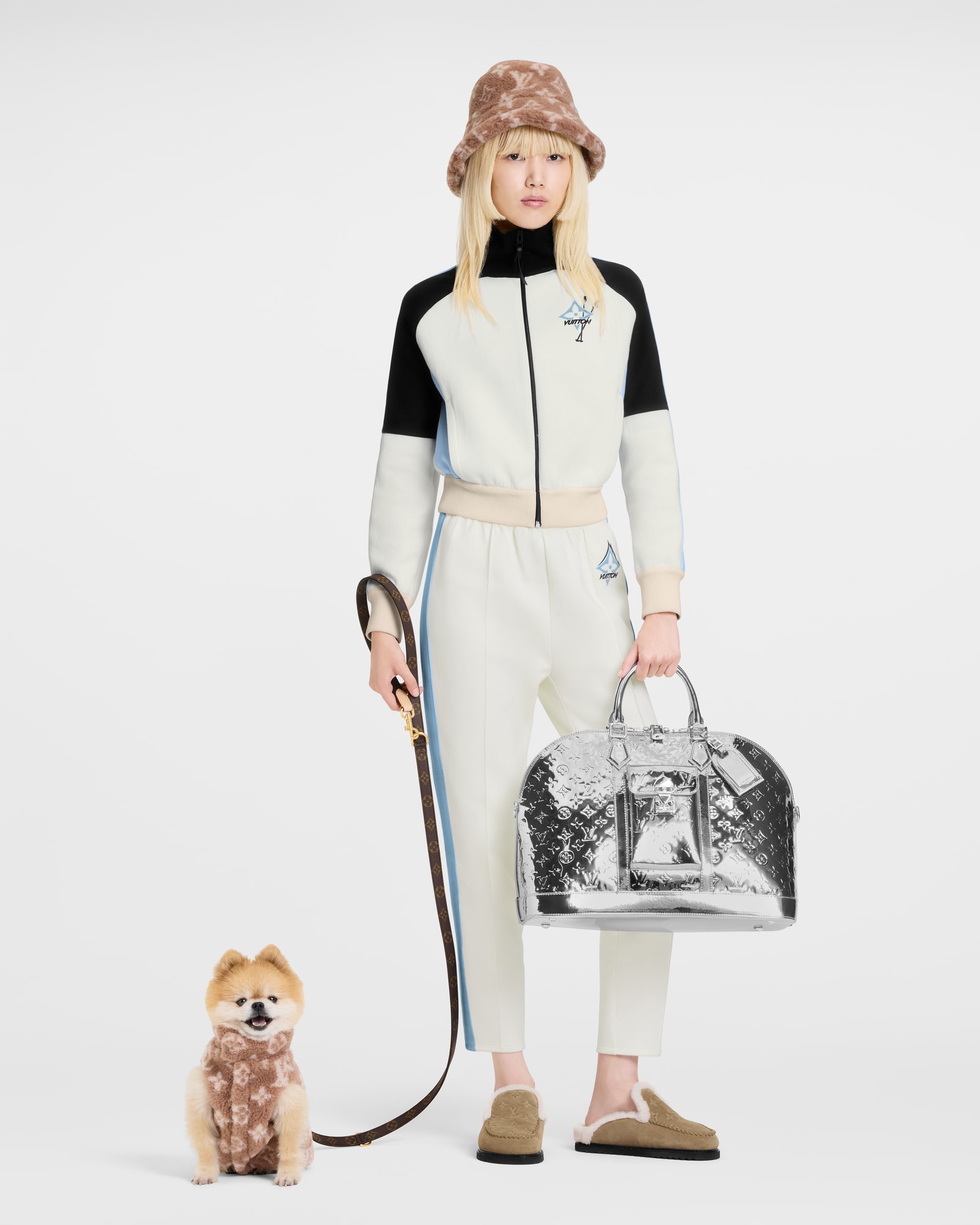 本款慢跑裤以轻盈柔软的棉料混纺演绎清爽运动风范。外侧色块条纹与皮革饰边抽绳构筑考究细节。正背面缝线褶裥延长视觉线条,后部当季滑雪风格 Monogram 花卉标注品牌身份。