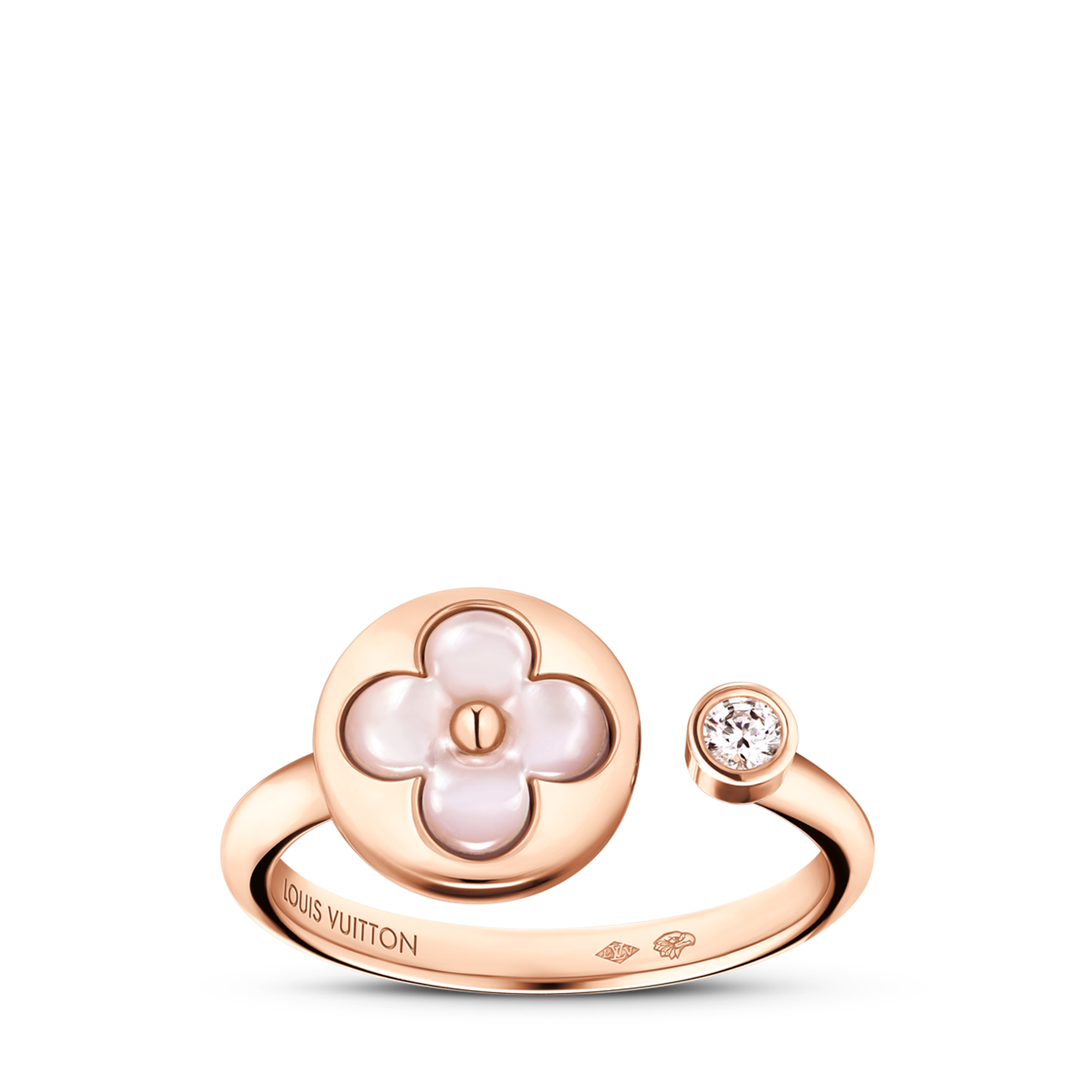 Color Blossom BB Star 耳钉以星形构型重绎诞生于 1896 年的 Monogram 花卉,令娇艳贝壳花瓣绽放于耀目 18K 金之上,可为各式造型注入熠熠华彩。与同系列其他珠宝搭配相宜。