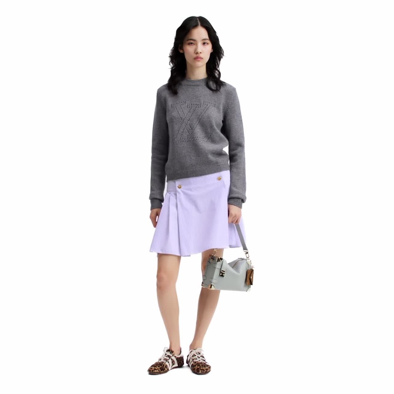 本款套头衫延续经典圆领设计,以华美山羊绒针织升级舒暖体验。大号 LV 字母呈现工致穿孔效果,缓缓道出品牌考究意蕴。