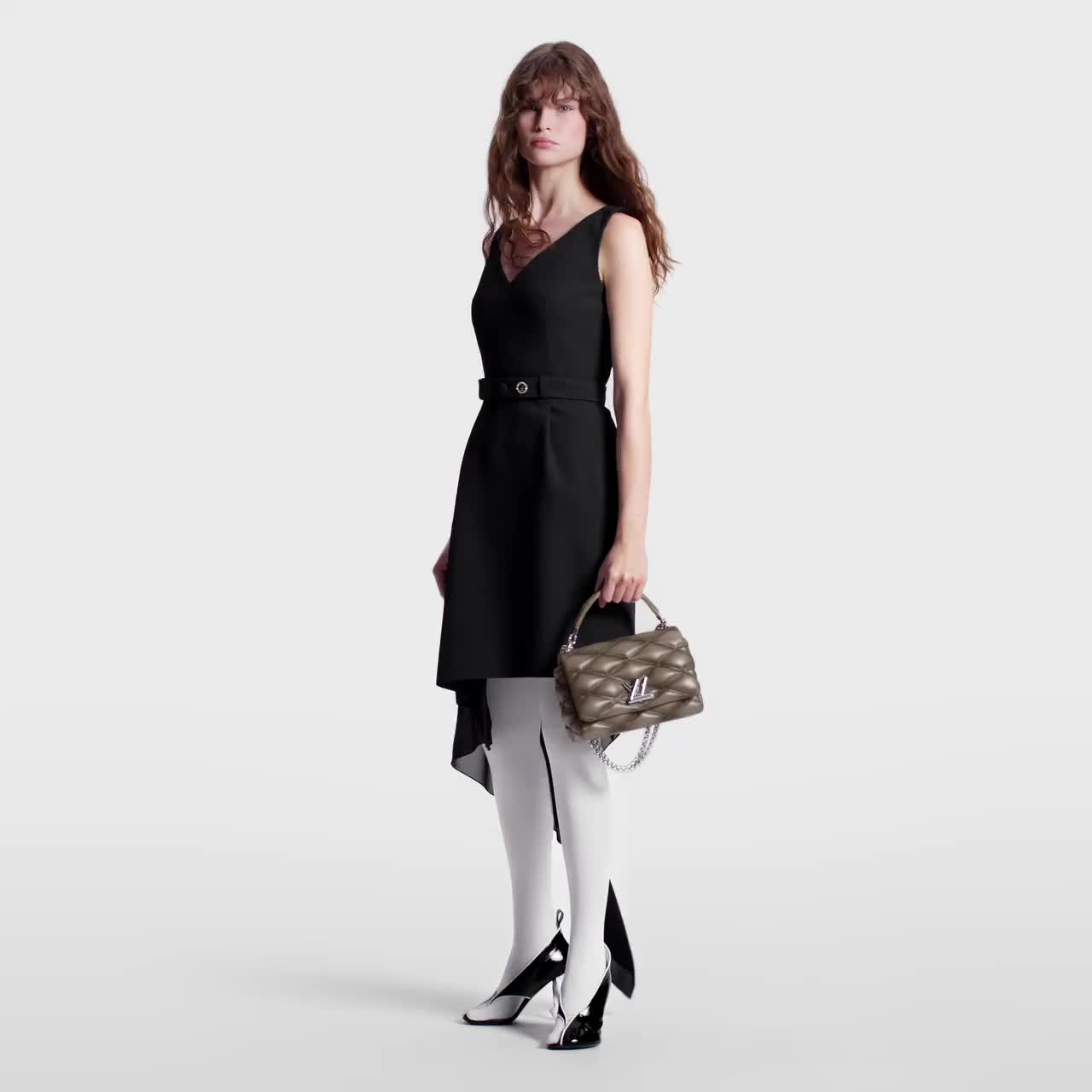 本款 GO-14 中号手袋出自 2024 春夏系列,以绗缝羊皮革呈现烘焙效果。耀目 LV Twist 扭锁与可拆卸滑链为大地色调注入清新姿彩。滑链与皮革手柄均可拆卸,实现多种造型可能。