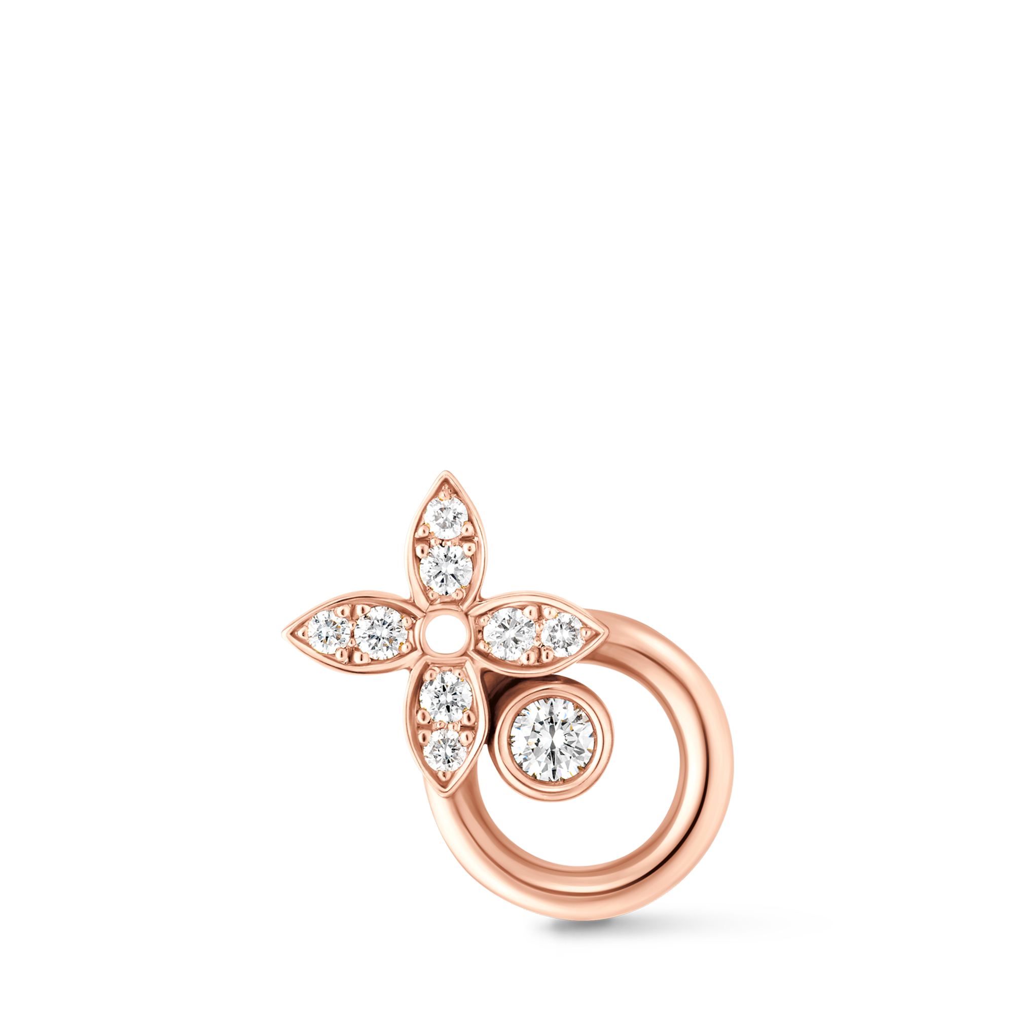 本款 Idylle Blossom Single 戒指以 18K 金塑造简约构型,并借耀目钻石释放璀璨光芒。星形 Monogram 花卉向 1896 年诞生于 Georges-Louis Vuitton 手中的品牌经典元素致意。可与同系列其他珠宝单品叠搭,轻松点亮任意造型。