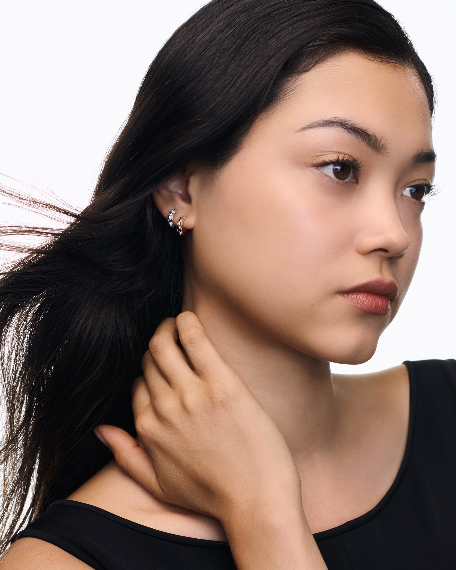 Le Damier de Louis Vuitton 耳环以当代艺术视角诠释品牌传承。抛光 18K 金圈环排布璀璨钻石,回溯路易·威登父子于 1888 年携手创作的经典 Damier 元素,同时传递天长地久的寓意。中性设计如第二层肌肤般舒适贴合,可与其他珠宝共同点亮各式造型。