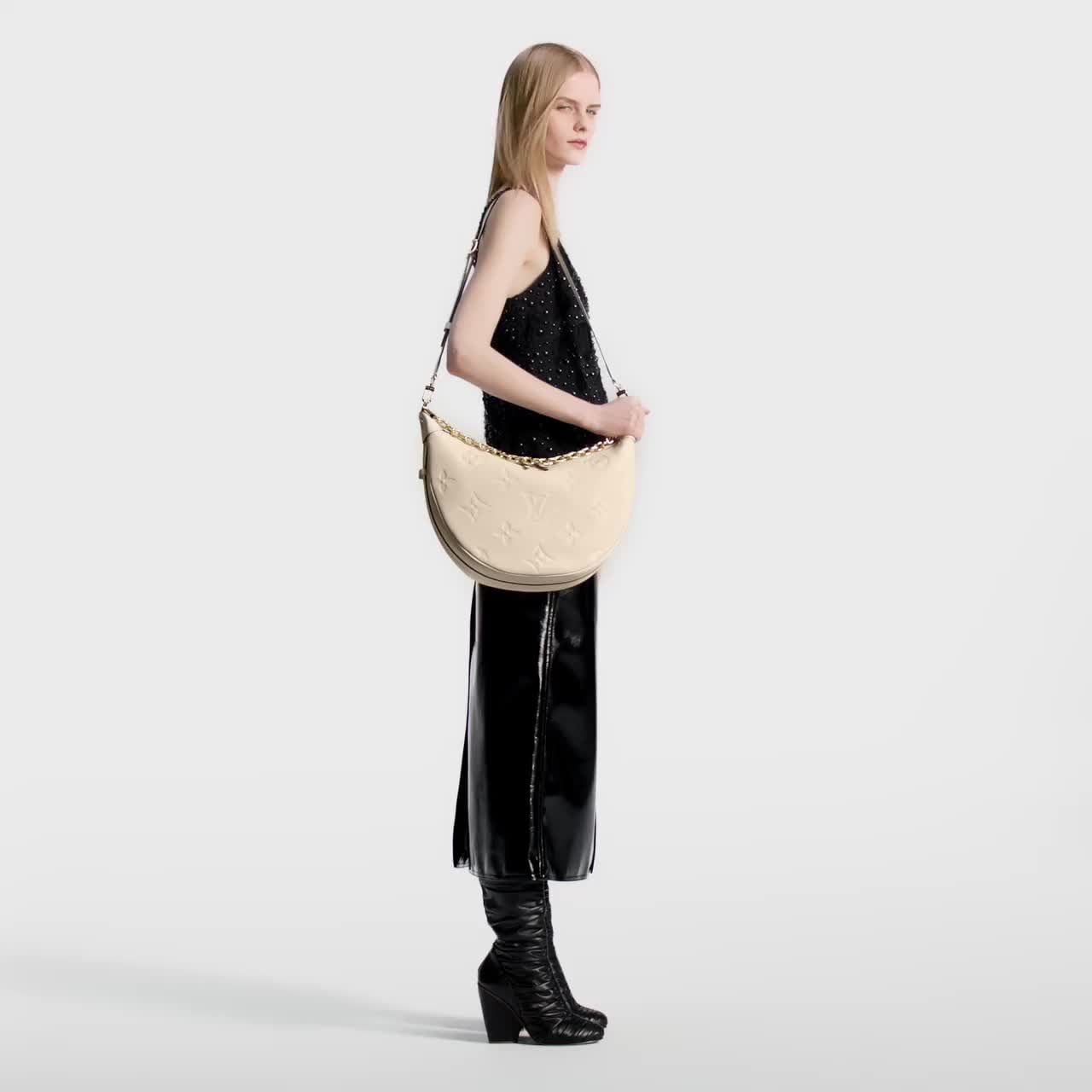 本款 Loop Hobo 手袋选用柔软 Monogram Empreinte 皮革塑造贴合身形的潮流半月构型,以充裕空间成就都市出行佳选。可拆卸拉链内袋亦可单独使用,耀目链条和可拆卸肩带提供多种背携方式。