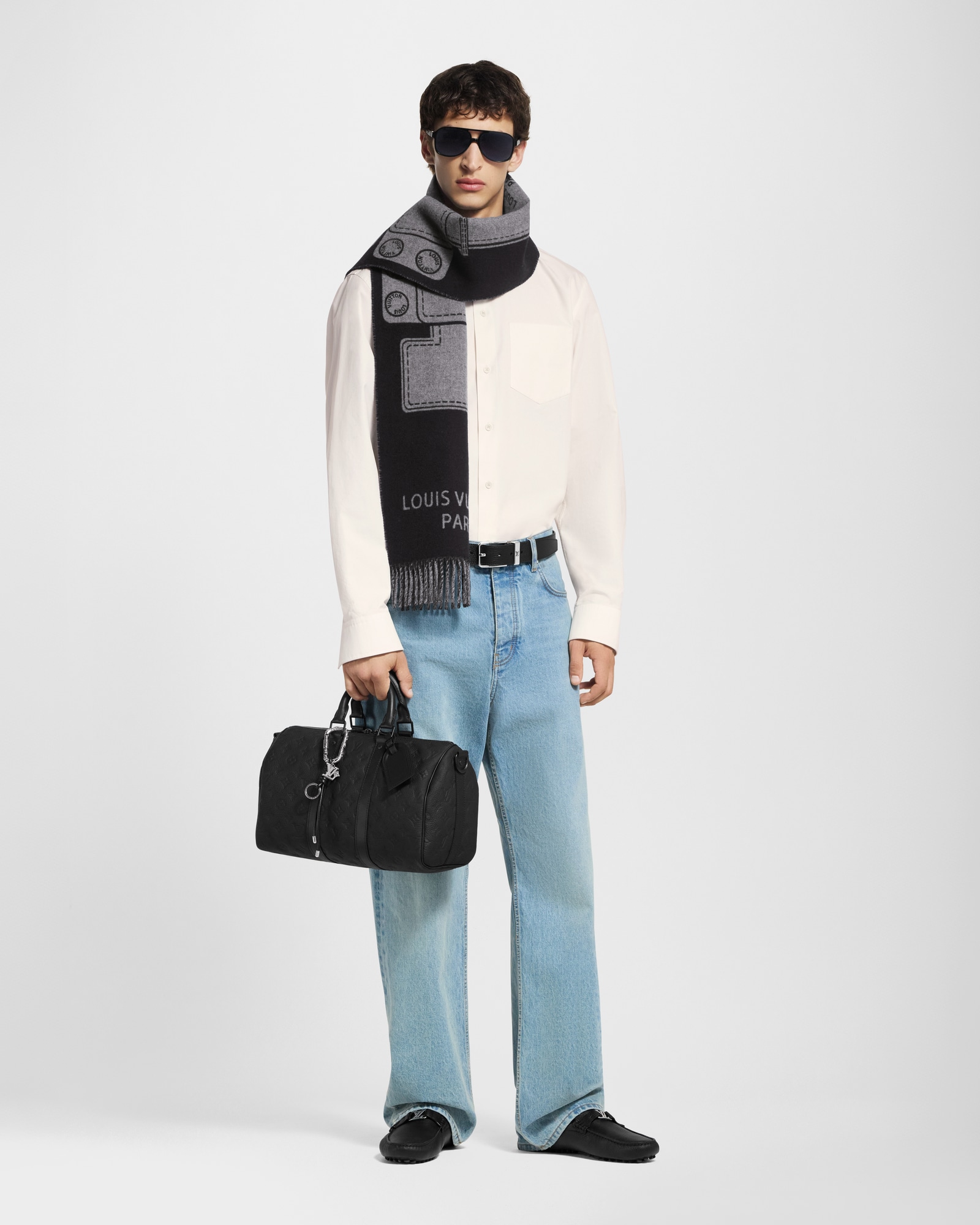 本款 LV Drift 钩扣包饰为莹泽金属钩扣搭配深邃皮革与 LV Flower 装饰,以混搭材质与铭纹细节为实用构型增添瞩目姿彩。