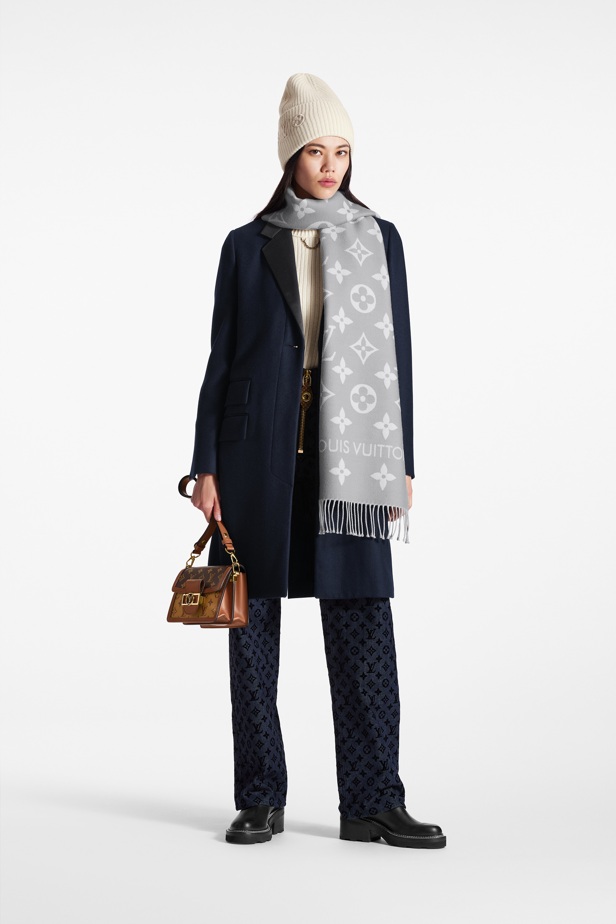 LV ESSENTIAL 围巾拉长经典 Monogram 图案中元素之间的距离,呈现清爽观感。绵羊毛带来柔暖质感,路易威登标识和流苏饰边完善整体,在 Reykjavik 围巾和 Logomania 围巾之外再添闲适之选。