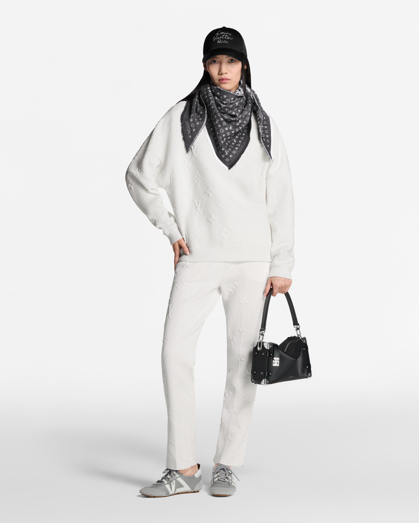 LV Script 帽子以考究棉布塑造动感廓形,兼具潮流风范和舒适体验。正面呈现璀璨莱茵石勾勒的手写体路易威登巴黎标识,后部的莱茵石 LV 字母再添品牌笔触。