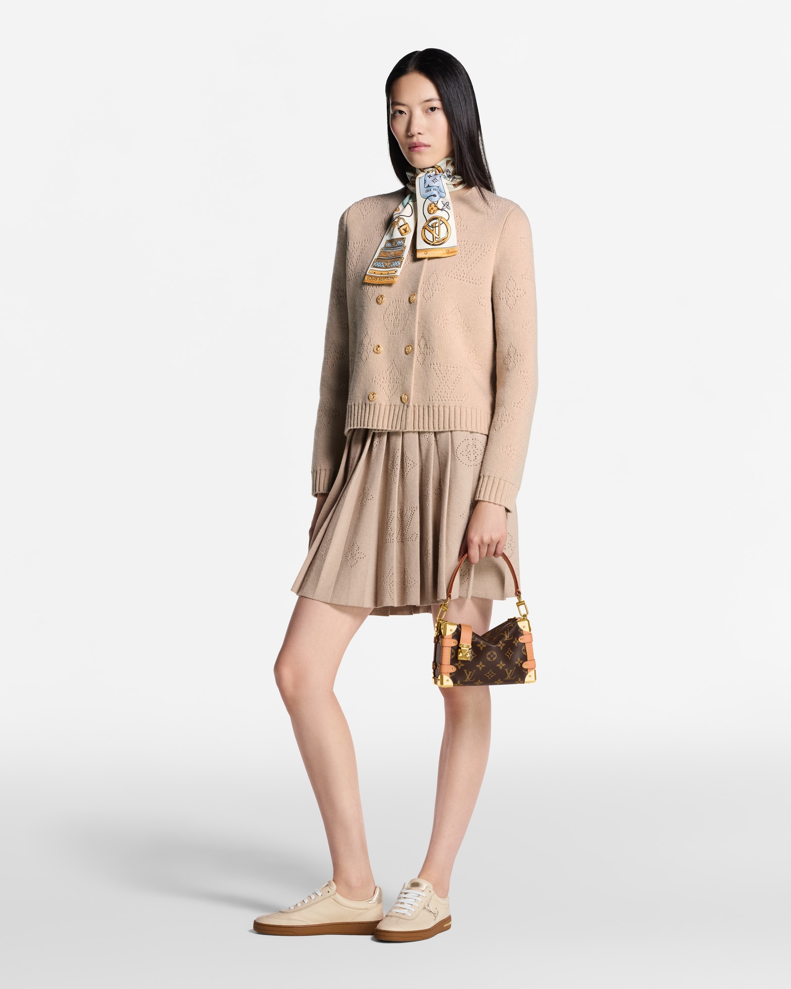 LV Tool Box 桑蚕丝束发带融合工具印花和路易威登传统硬箱元素,以繁复图案致敬品牌精湛匠艺和创意美学。反面全幅铺陈 Monogram 图案。