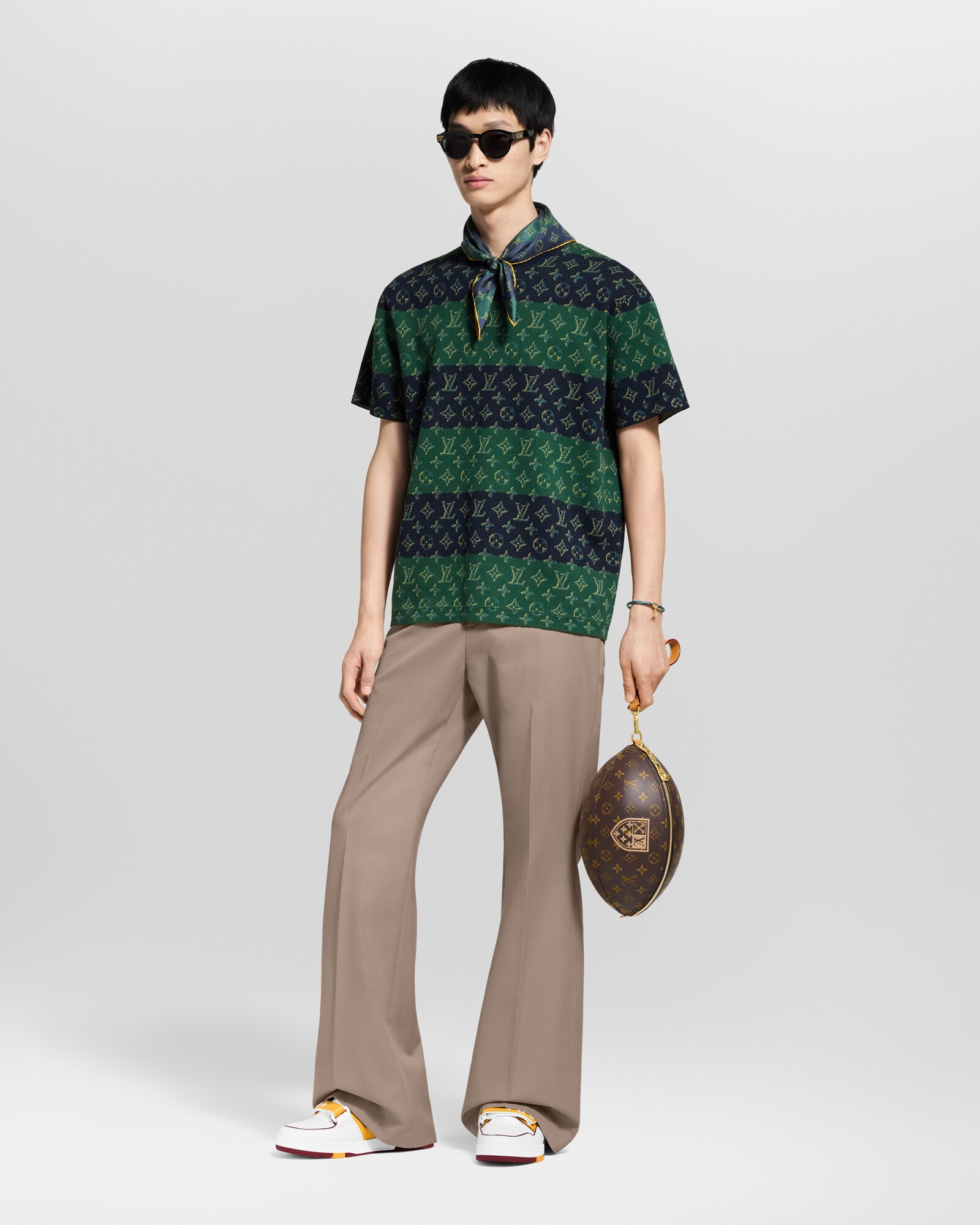 本款 LV Trainer 运动鞋以穿孔牛皮革重绎经典设计,再借活力色调呼应大学校队运动主题。鞋侧绽放大号 Monogram 花卉,后部抒写不对称 Louis 和 Vuitton 标识,魔术贴鞋带点缀 Monogram 花卉。