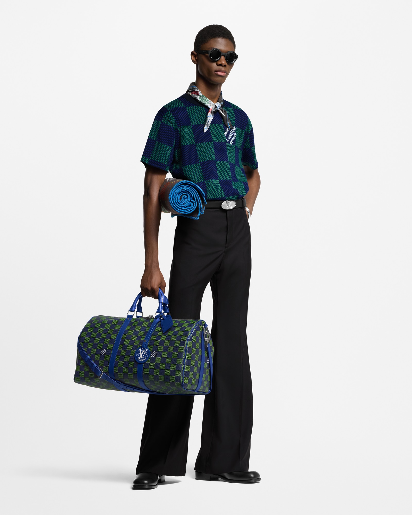 LV Vers Damier Plaid 围巾取材绵羊毛,以典雅背景烘托 Pharrell Williams 设计的原色格纹图案,可为寒冷时节注入欢欣活力。