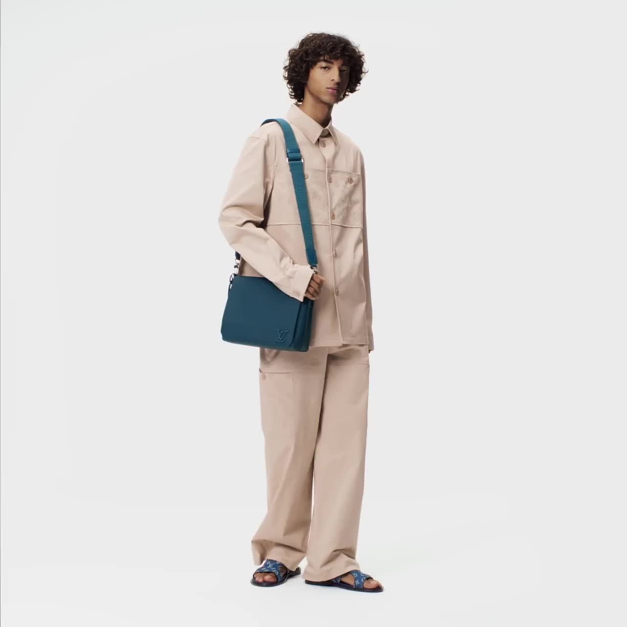 本款 Takeoff 邮差包选用粒面皮革成就简约设计,以正面金属 LV 字母和翻盖斜切角点睛 LV Aerogram 系列的标志性元素。搭配可拆卸并调节的路易威登标识织物肩带,肩背或斜挎随心切换。