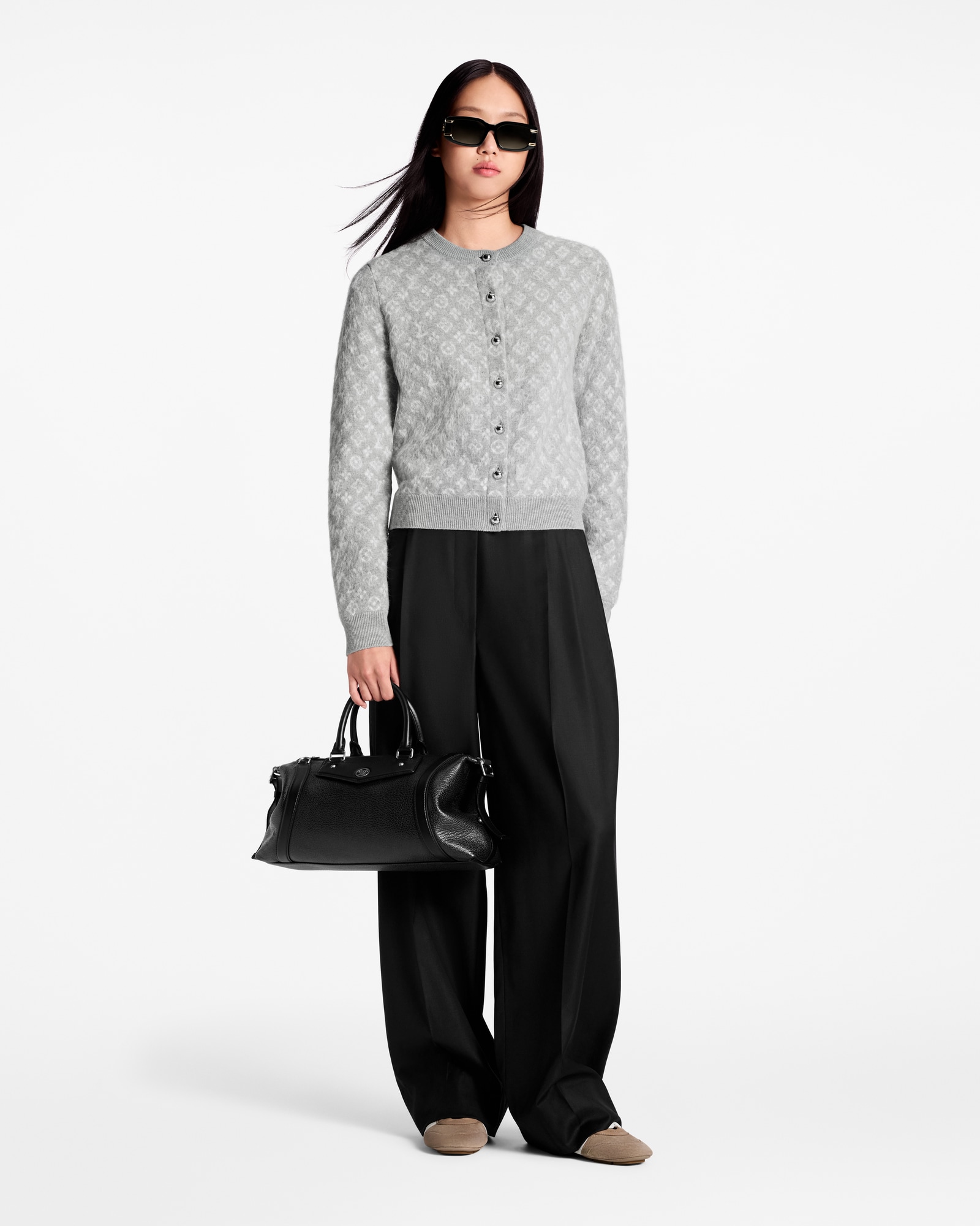 本款开衫取材拉绒绵羊毛、羊驼毛和山羊绒混纺面料,以摩登创意重塑经典设计。内敛双色衣身全幅铺陈 Monogram 图案。圆领、袖口与腰部罗纹勾勒整体轮廓。球形纽扣束紧前襟。