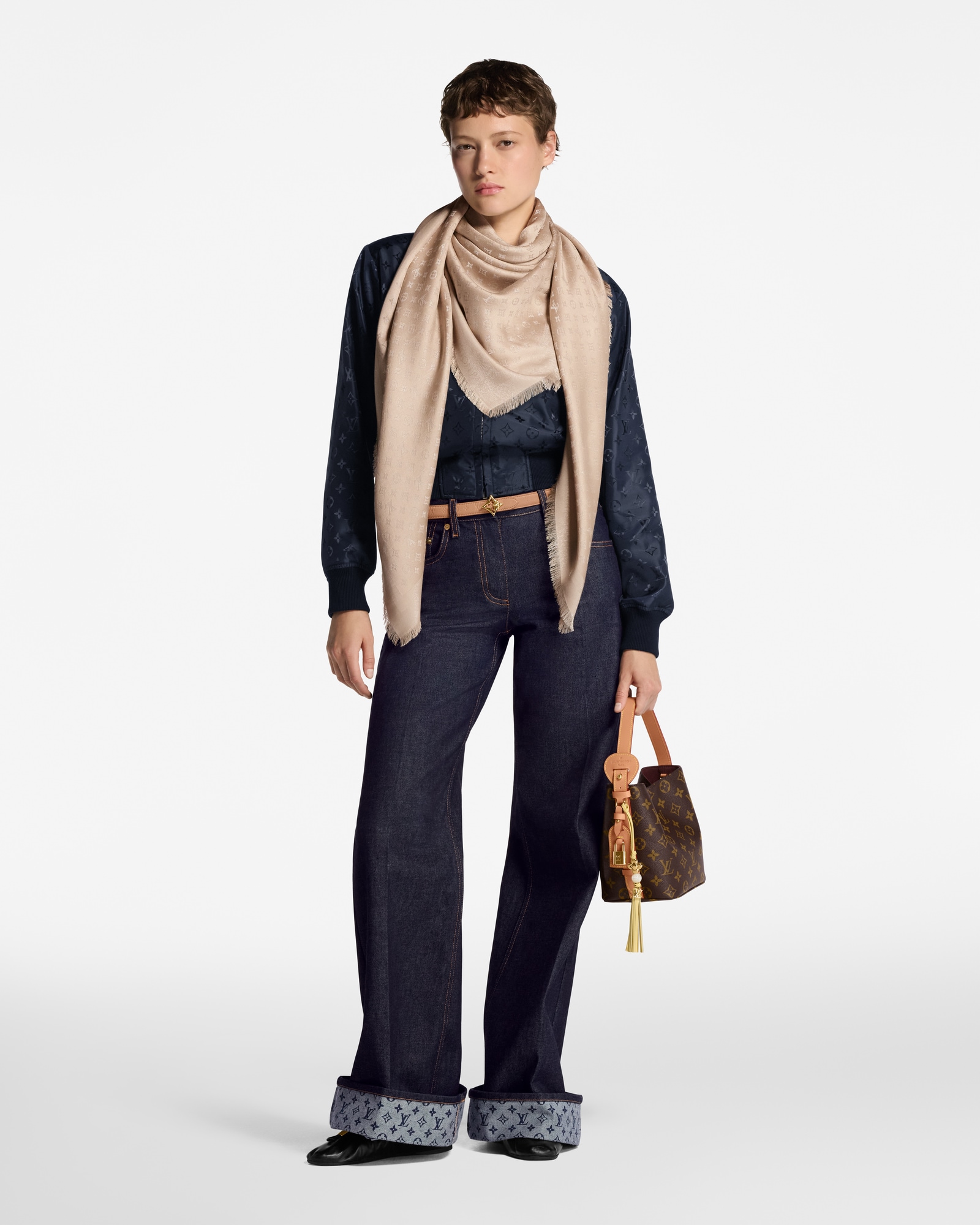 Moonlight 披肩为丝毛混纺铺陈 Monogram 提花织纹,以金属纱线注入莹泽微光。摩登设计缓缓流露优雅气息和品牌格调,可轻松点亮日常造型或重要场合。
