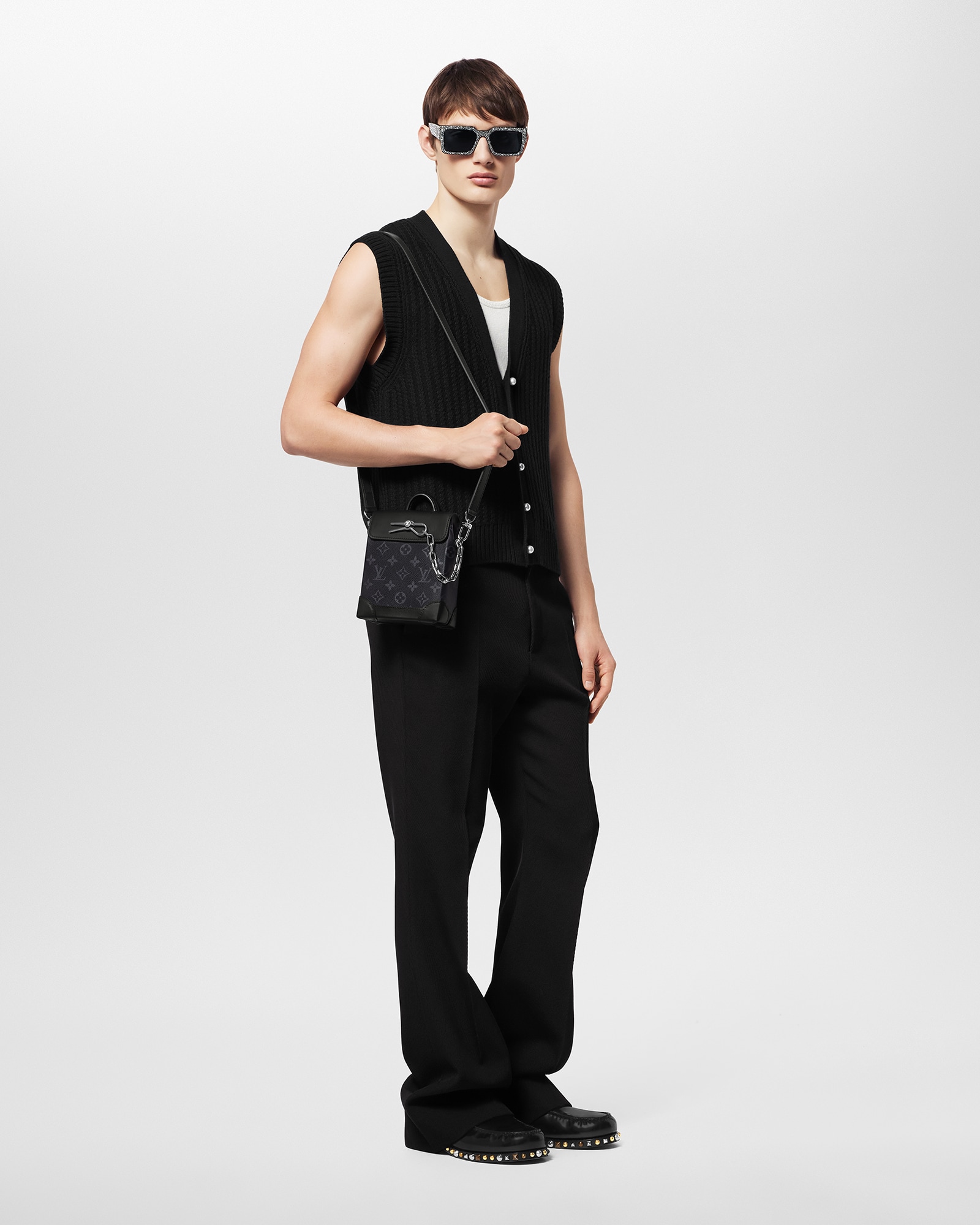 本款 Nano Steamer 手袋取材 Monogram Eclipse 帆布,以袖珍尺寸浓缩 Steamer 手袋设计,借加固包角、饰针和链条复现原版元素。搭配顶部手柄和可拆卸并调节的链条,成就多种背携方式。
