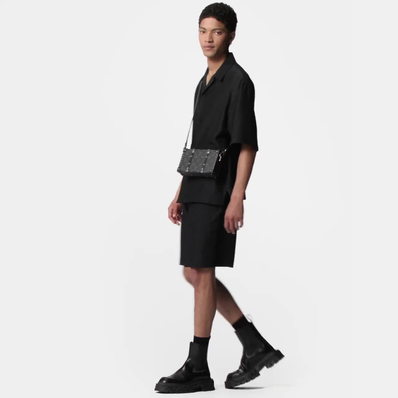 Neo Wallet Trunk 手袋援引路易威登硬箱的木条和金属加固包角等元素,搭配可拆卸肩带。充裕空间可收纳手机、钥匙、钱夹、卡片和耳机等日常所需。