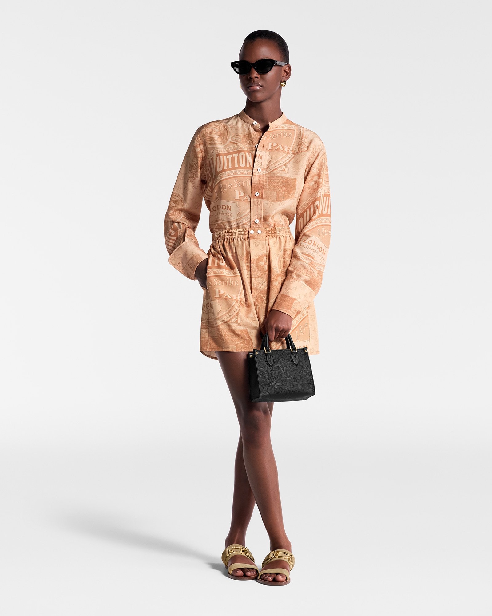 本款 OnTheGo BB 手袋为 Monogram Empreinte 皮革压印 Monogram 图案,以别致手柄固定件和包角的铆钉皮革袢彰显匠心细节。玲珑构型可收纳智能手机和短款钱夹,可拆卸并调节的肩带方便肩背。