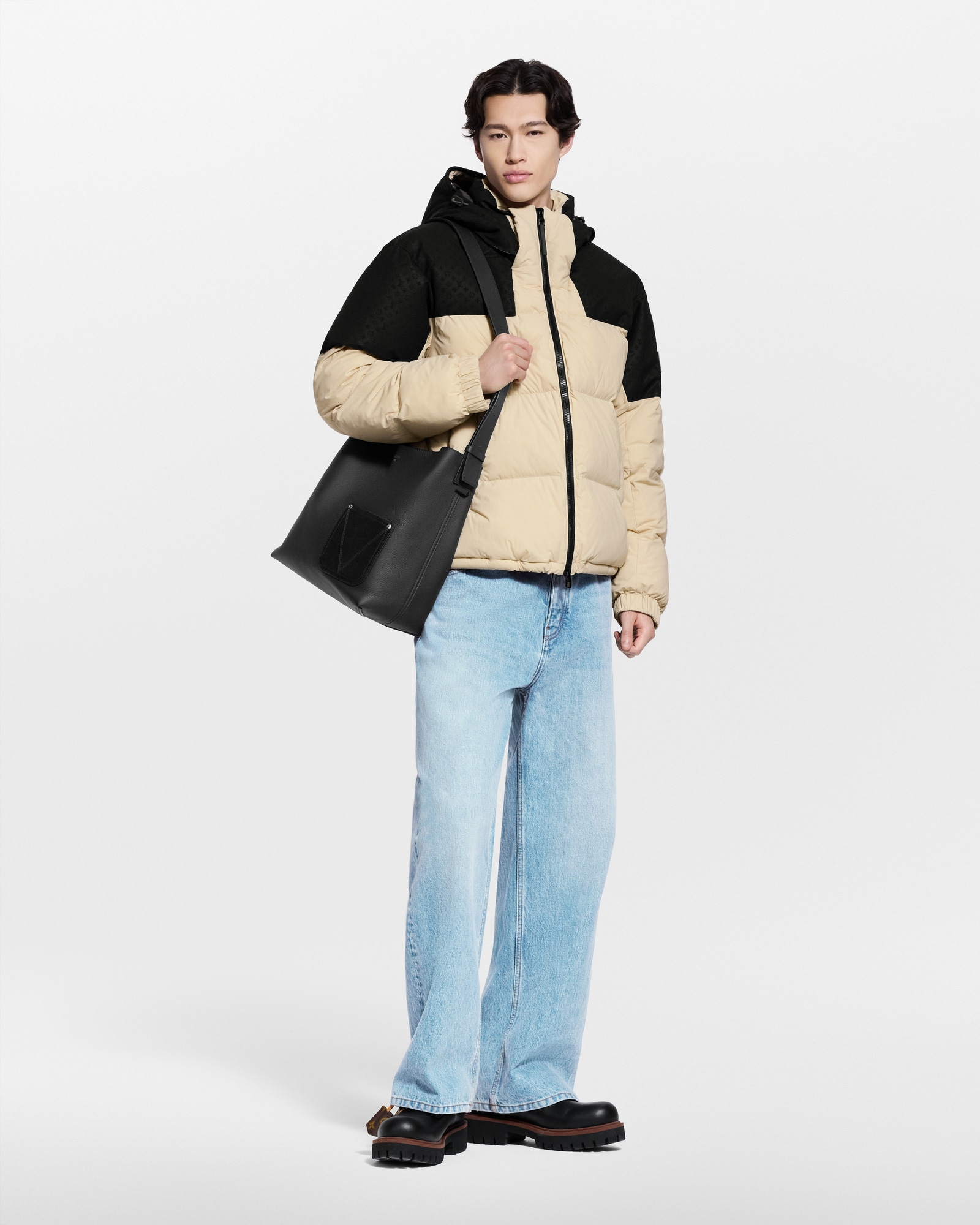 这款实用夹克兼具温度与风格。衣身由两种近色调面料拼配,抵肩与兜帽采用 Mini Monogram 压纹材质。可拆卸兜帽巧妙收纳于衣领,衣袖侧点缀标识硅胶贴饰。Ecodown© 填充物轻盈保暖。
