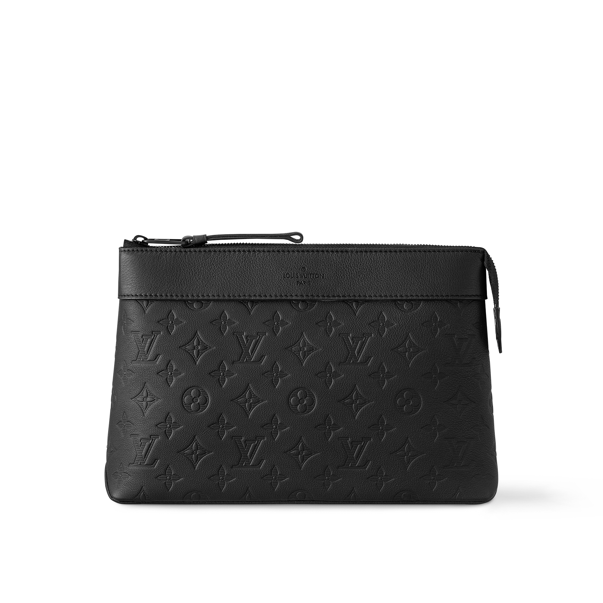Pochette Voyage Souple 手拿包取材柔软 Monogram Eclipse 涂层帆布,以圆润笔触勾勒经典 Pochette Voyage 手拿包线条,带来舒适随行体验。纤薄构型设有拉链隔层和磁扣后袋。