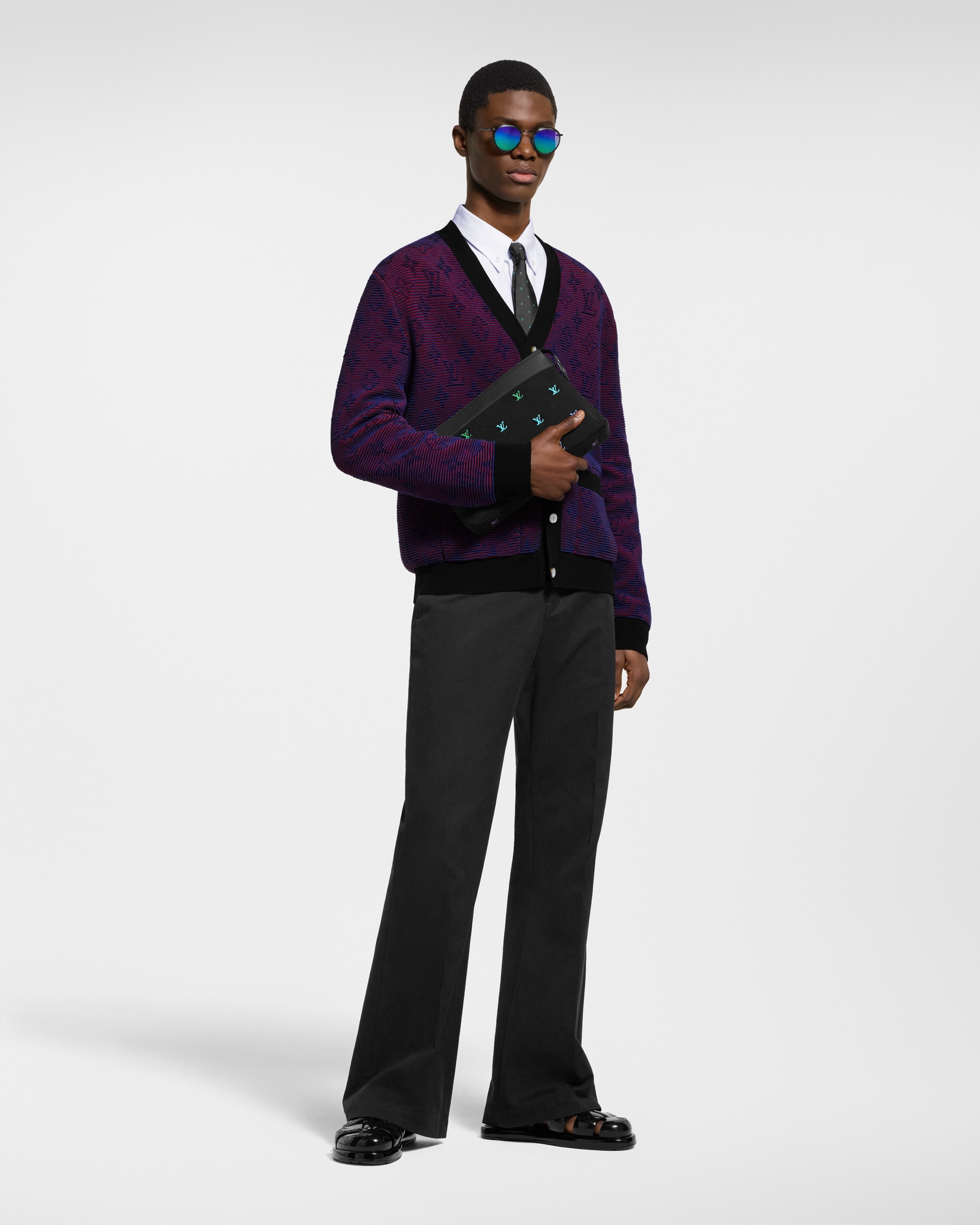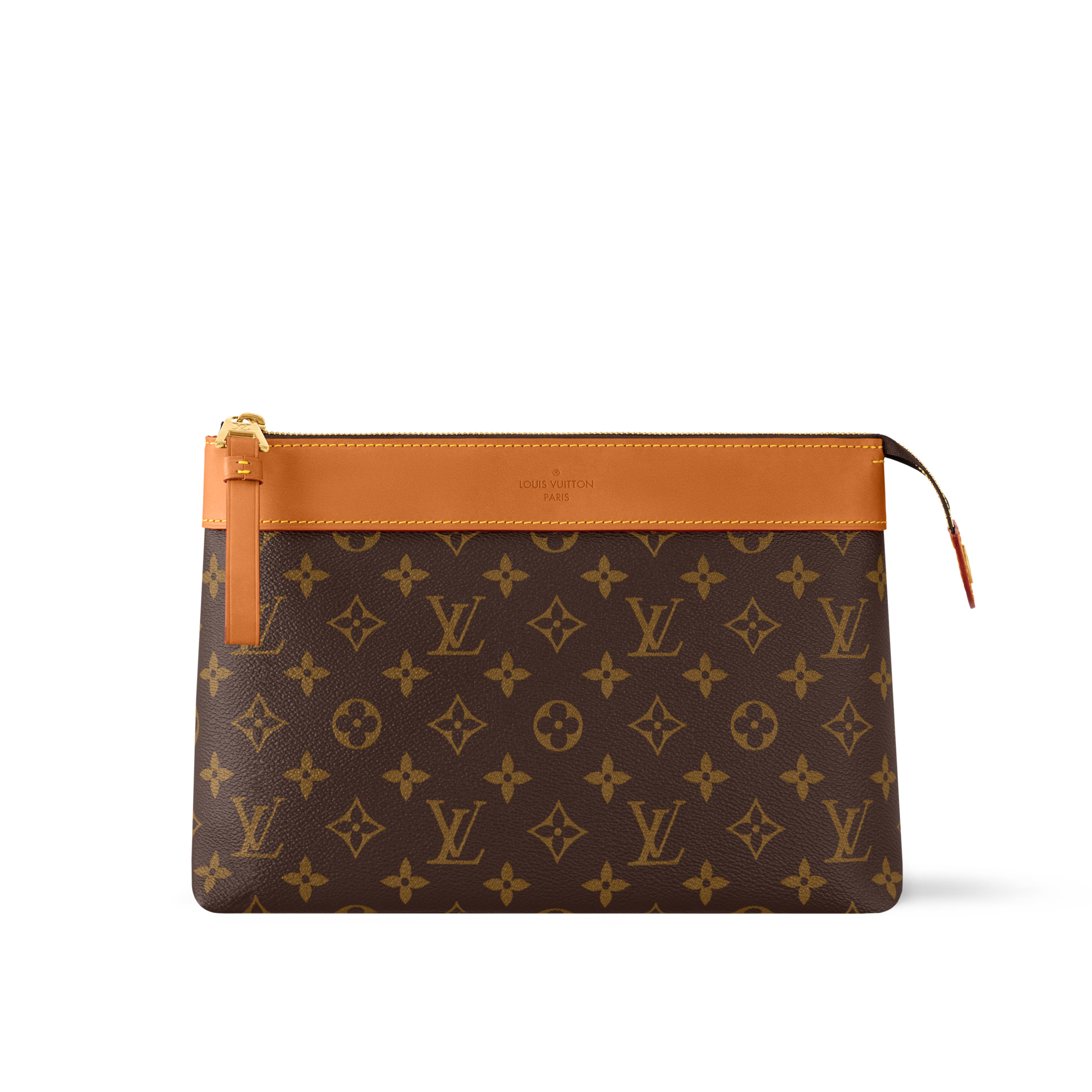 本款 Pochette Voyage Souple 手拿包取材水洗 LV Blason 丹宁,以深邃包身烘托 LV 字母刺绣,搭配棉质内衬。后袋配有磁扣开合,亦可收入大号手袋。
