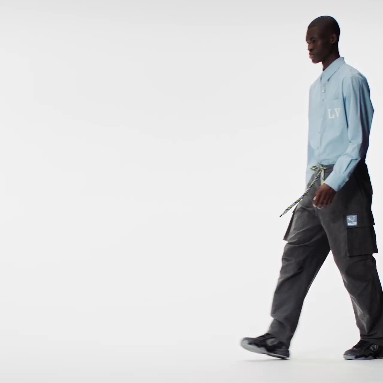 本款棉质工装裤以鞋带一般的彩色抽绳束紧腰部,再为左口袋点缀 LV 贴饰,成就周末休憩的悠闲之选。