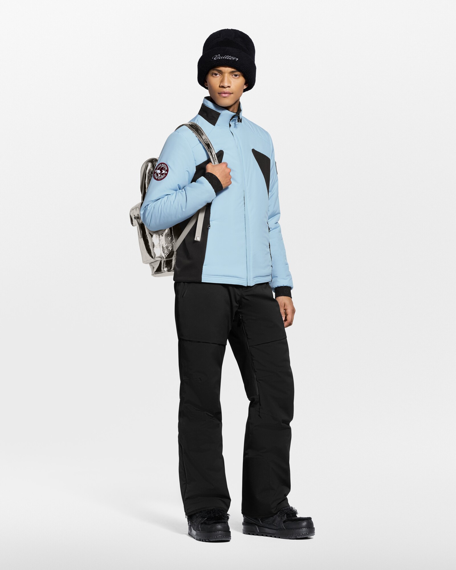 本款双面束腰夹克拥有轻薄衬垫,可单独穿着或与软壳滑雪夹克叠搭。深邃外层与 Monogram 针织侧围互为映衬。浅色侧面与衣袖处滑雪主题刺绣标识贴饰注入清新气息。防水拉链与绒面内衬衣领提升舒适度,各侧拉链袋再添功能细节。