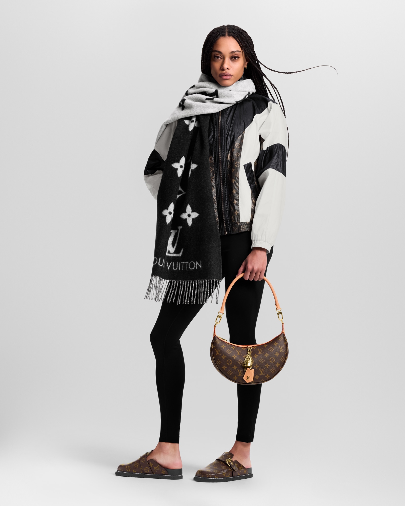 本款 Reykjavik 围巾以提花针织工艺描绘经典 Monogram 图案和品牌元素。柔软山羊绒裁出宽幅尺寸,为冬日旅人围裹融融暖意。