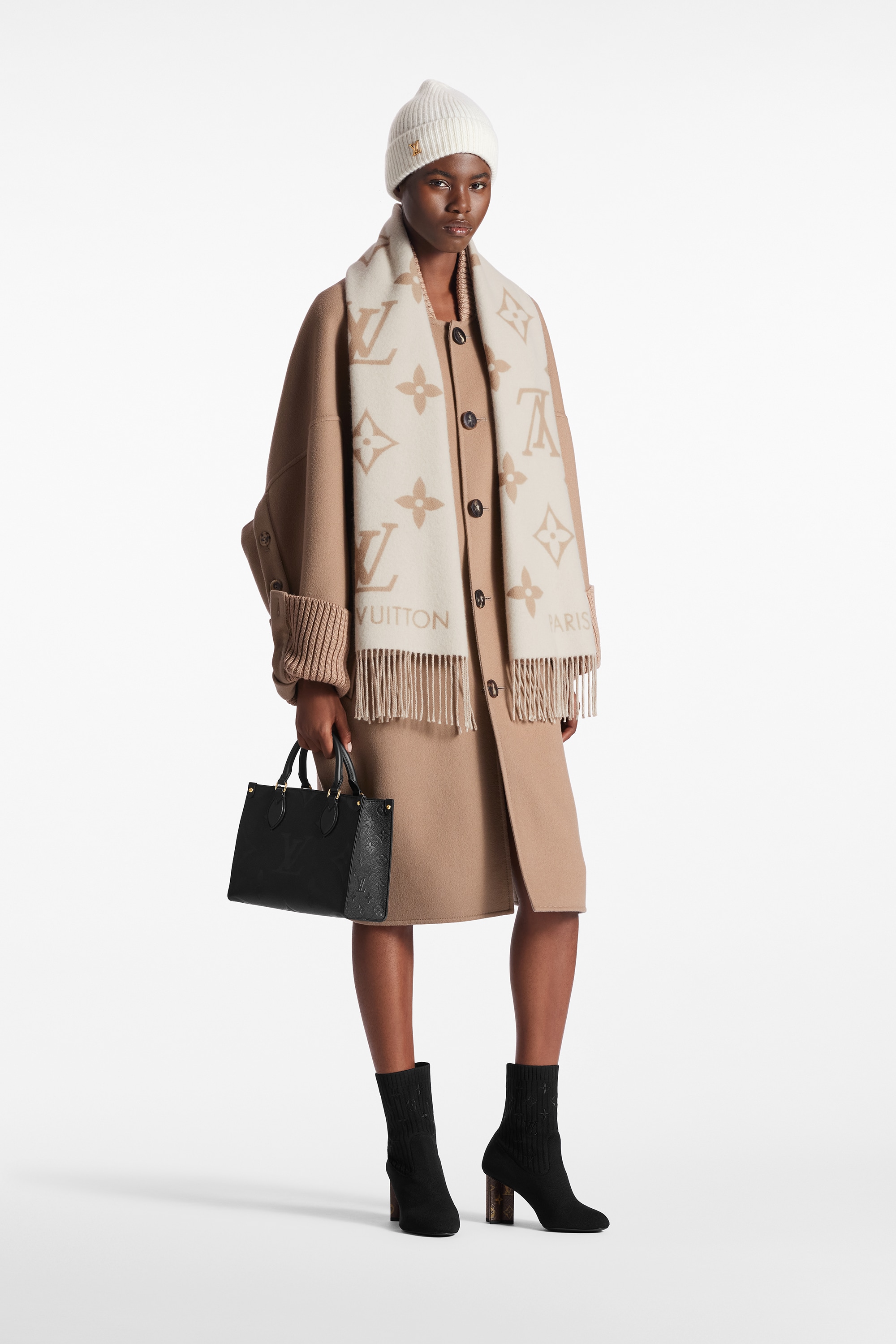 本款 Reykjavik 围巾一面描绘大号 Monogram 图案,另一面呈现反色效果,以品牌笔触解读精致美学。柔软山羊绒裁出宽幅尺寸,为凛凛寒冬带来温暖之选。