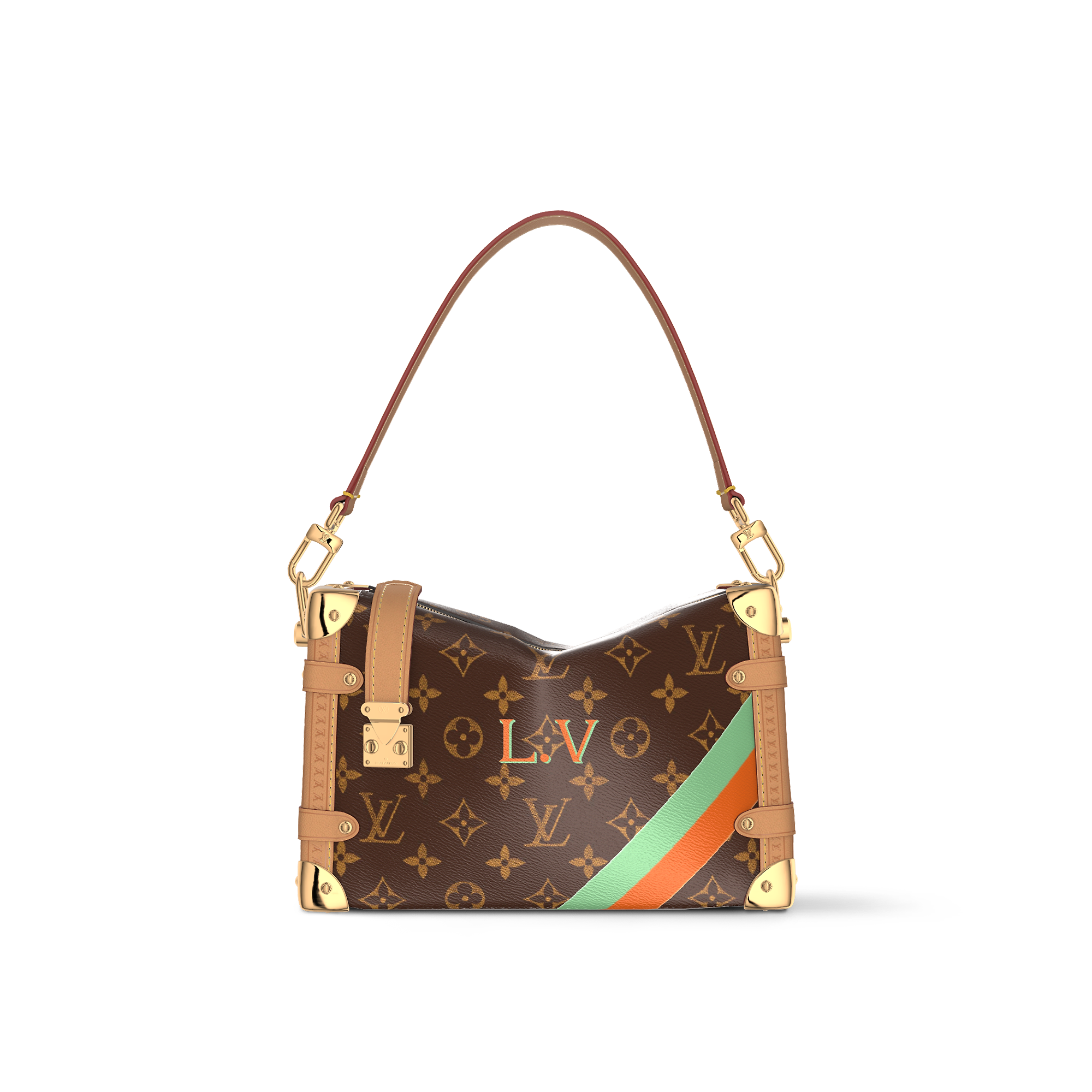 Nicolas Ghesquière 重复探寻路易威登的制箱传承,创作此款 Side Trunk 中号手袋。Monogram 帆布结合皮革饰边,皮革拉链头创意衔接标志性 S-lock 锁扣,与加固金属包角共同汇聚视线。宽手柄和皮革细肩带均可拆卸。