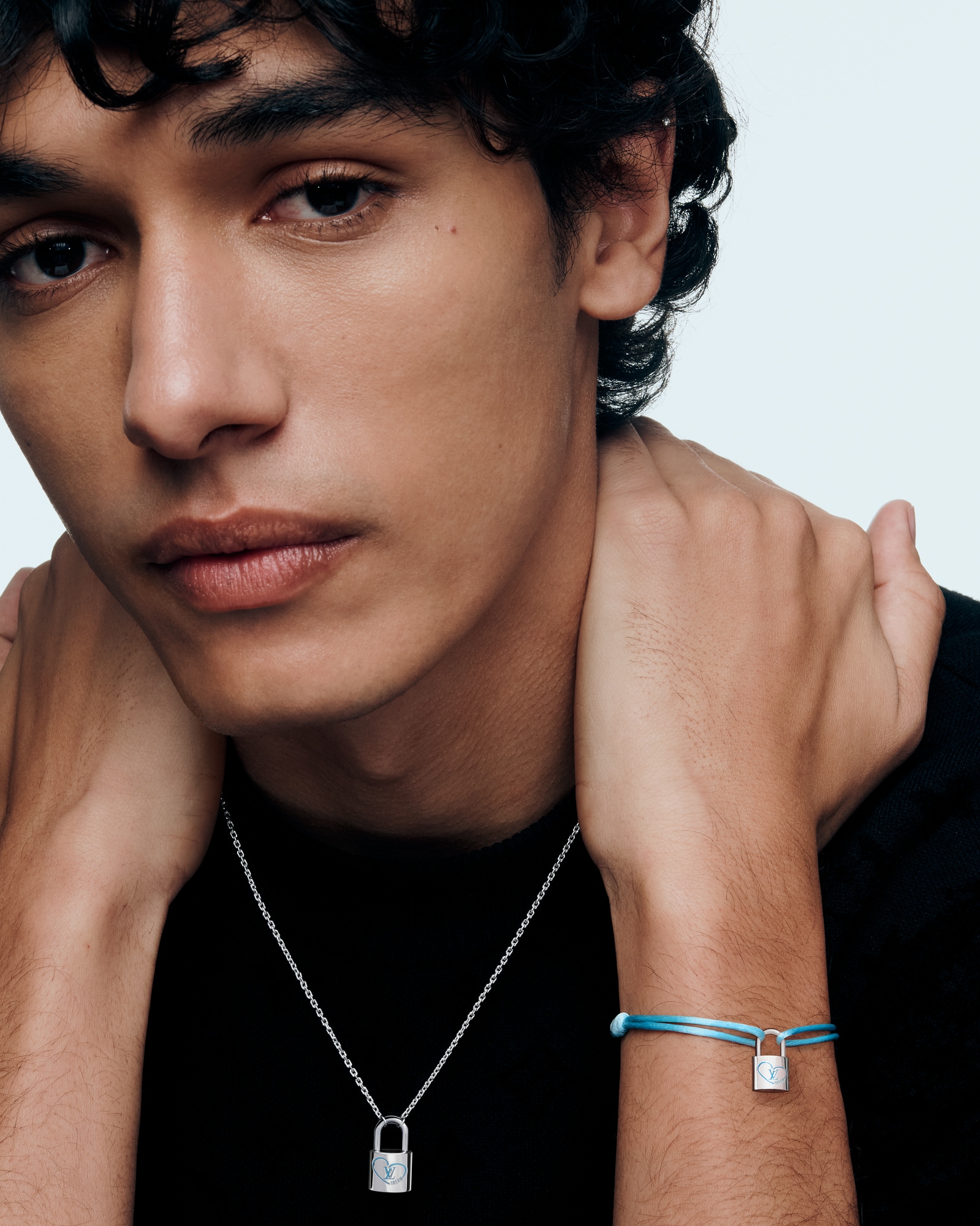 本款限定版 Silver Lockit 手链出自路易威登与品牌代言人李龙馥的合作系列,于传统元素之上抒写这位知名韩流艺人所传达的积极讯息。手链取材再生材质,搭配织物细绳。925 银挂饰回溯 Georges-Louis Vuitton 于 1901 年为 Steamer 手袋创作的经典挂锁。李龙馥设计的心形装饰镂刻 LV 字母标识,并抒写“Dream”字样。漆面釉彩注入清新摩登活力。可单独佩戴或叠搭,亦是颇具意义的佳礼:每售出一个 Silver Lockit 手链,将向联合国儿童基金会(UNICEF)捐赠 100 美元,用以援助弱势儿童,践行品牌与李龙馥共同秉持的公益理念。