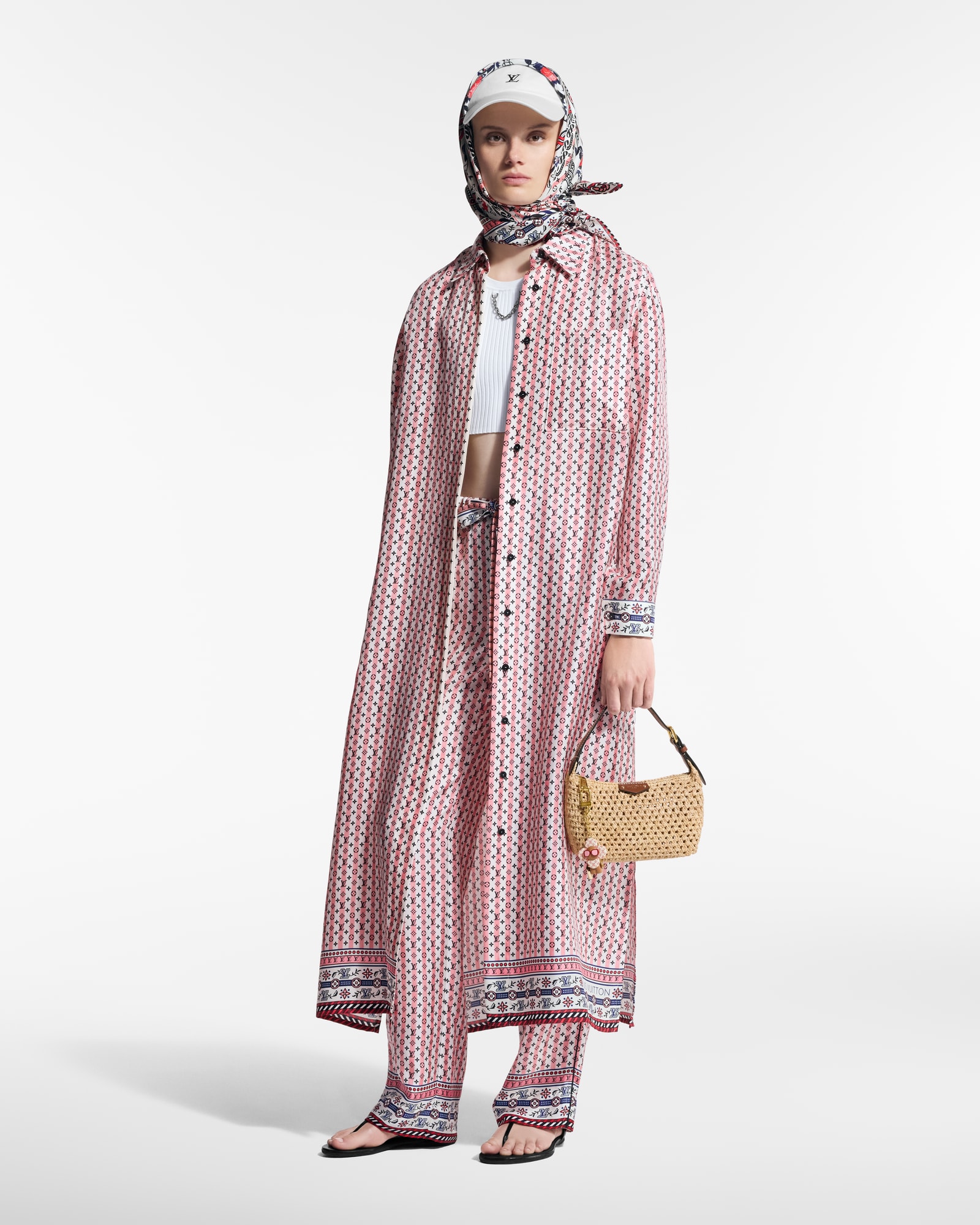 Summer Garden 桑蚕丝方巾令大号 Monogram 花卉栖居中央,与斑斓繁花、硬箱风格饰带和线绳等品牌标识共筑一派旖旎景致,灵动演绎南法悠闲的生活情调。明快色彩可为夏日造型注入典雅意韵。