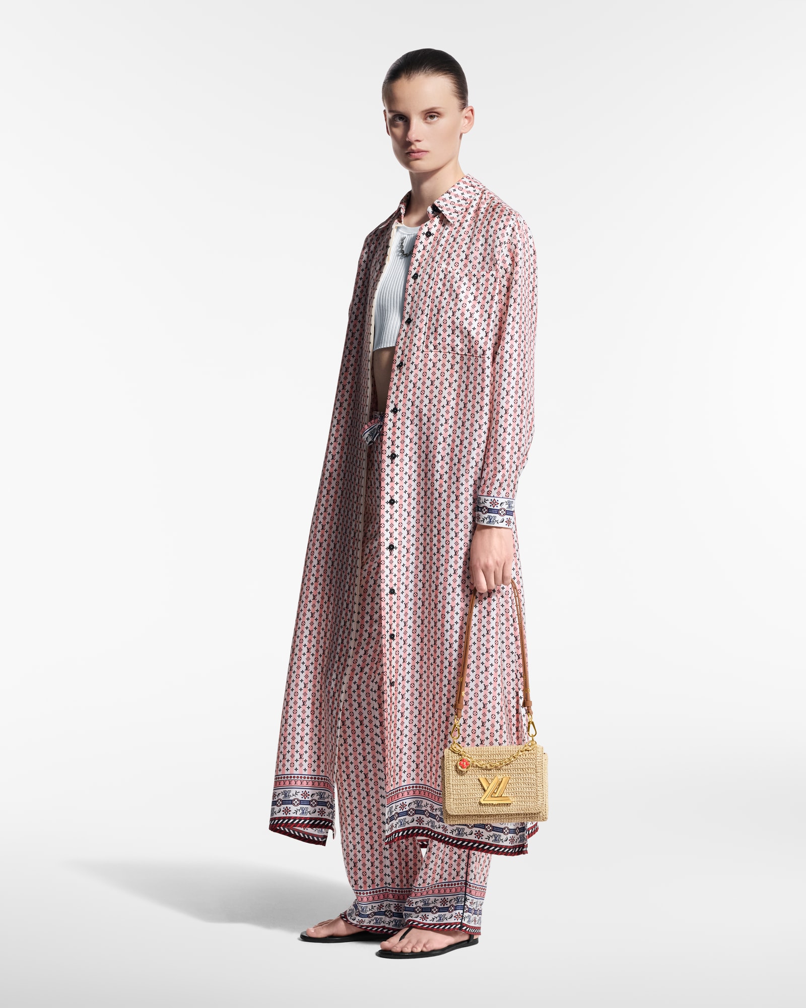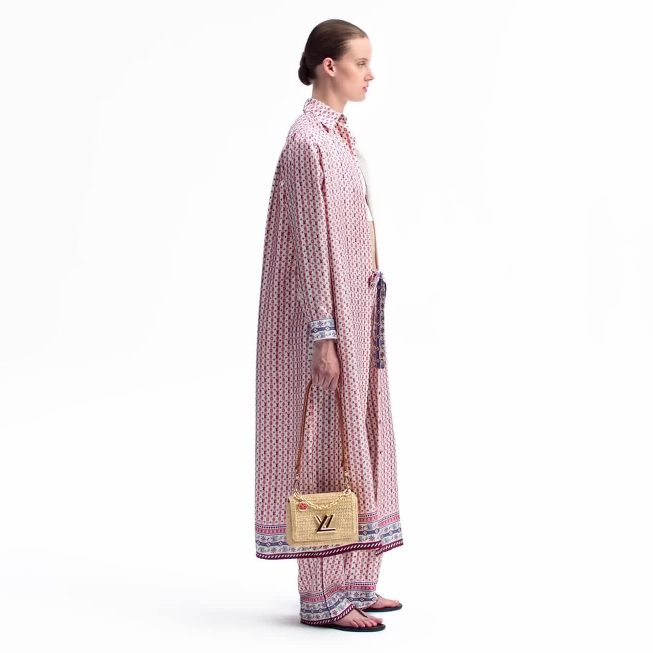本款 Twist Slim 小号手袋凝聚法国蔚蓝海岸的悠闲格调,以创意笔触印证品牌精湛匠艺。拉菲草包身融入撞色皮革饰边和标志性 LV Twist 扭锁,多重口袋便于有序收纳,可拆卸镜子再添功能考量。