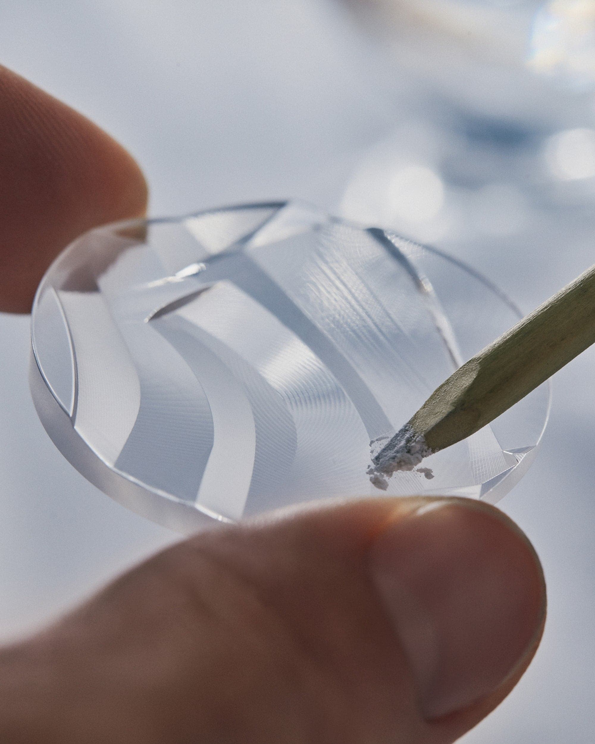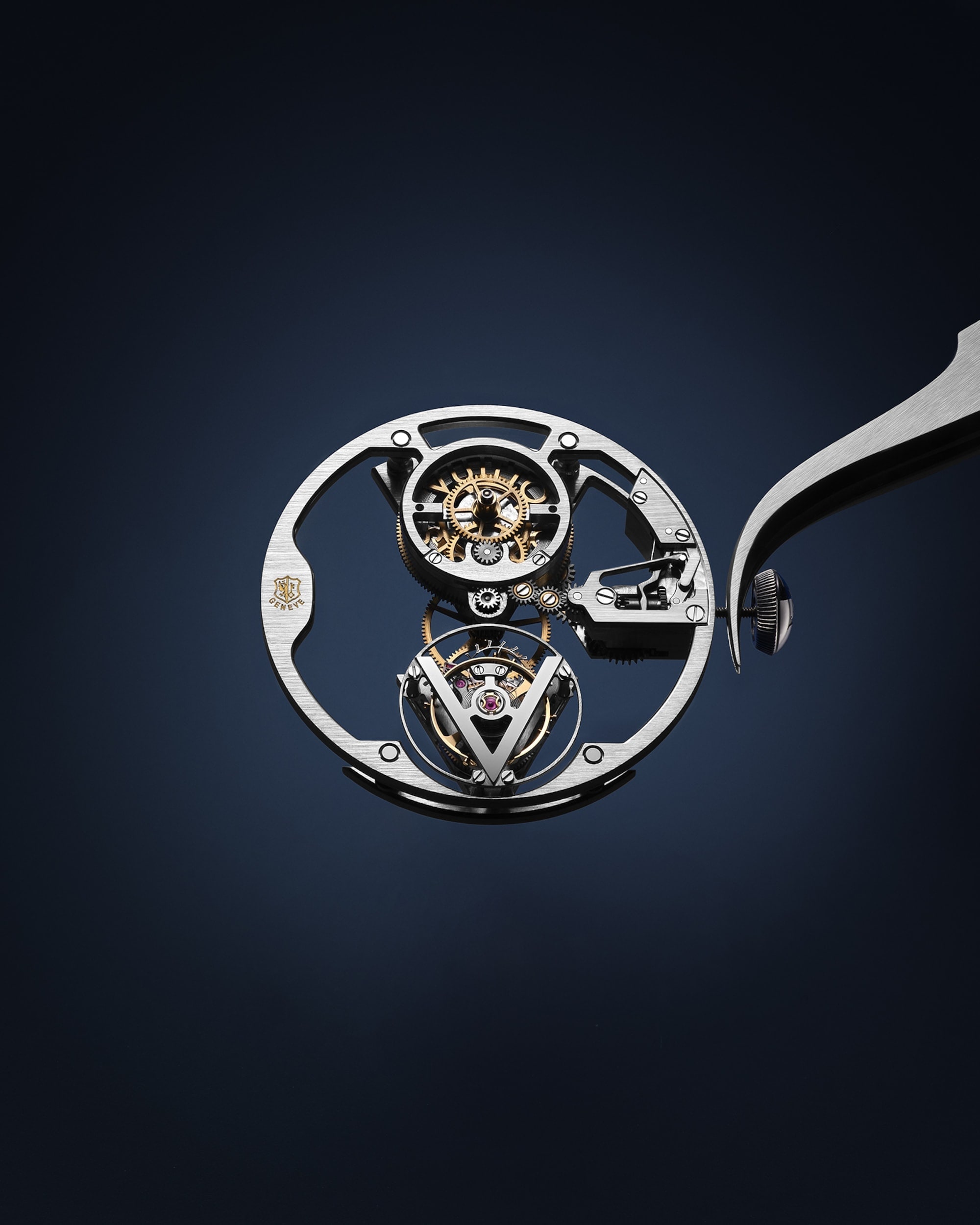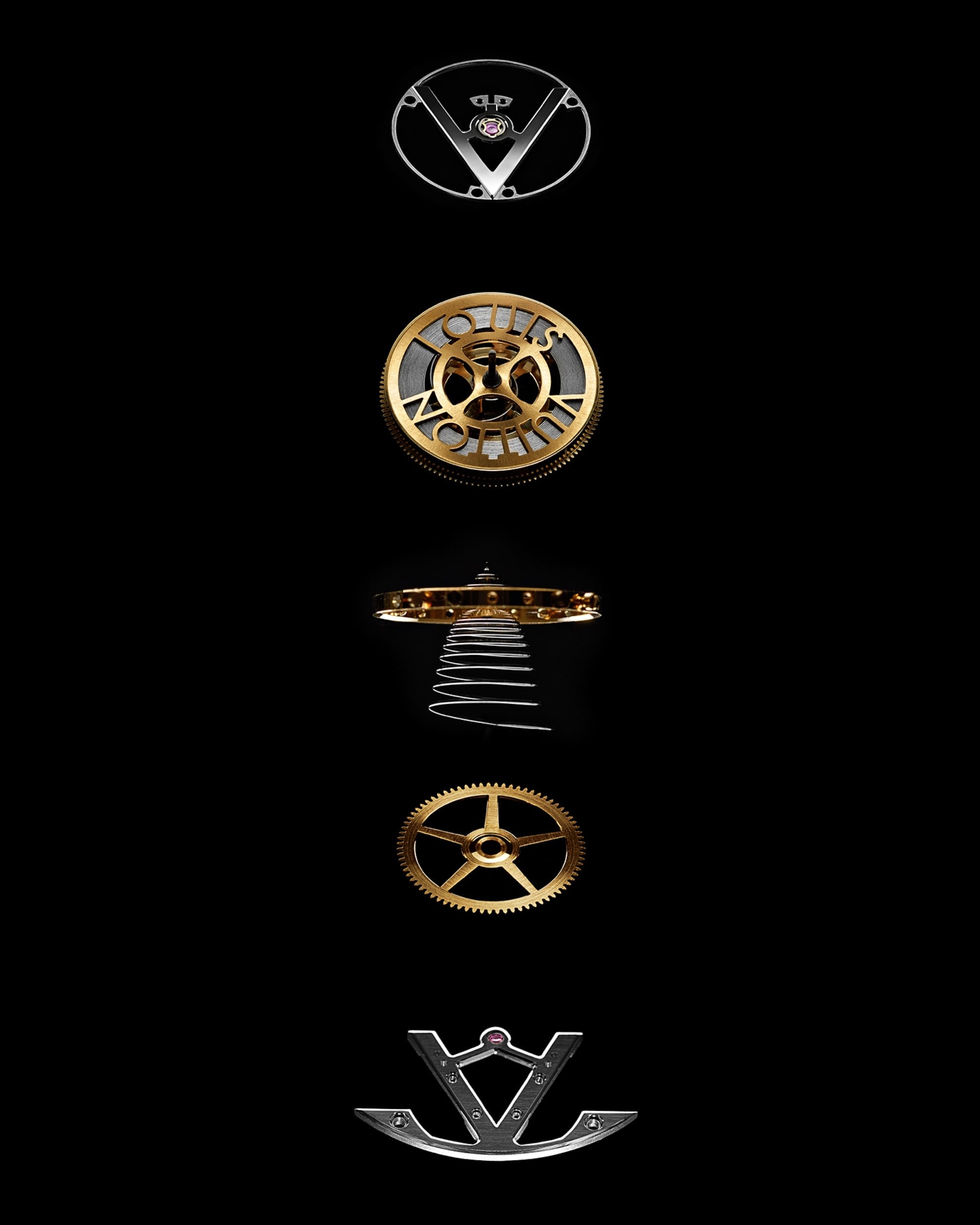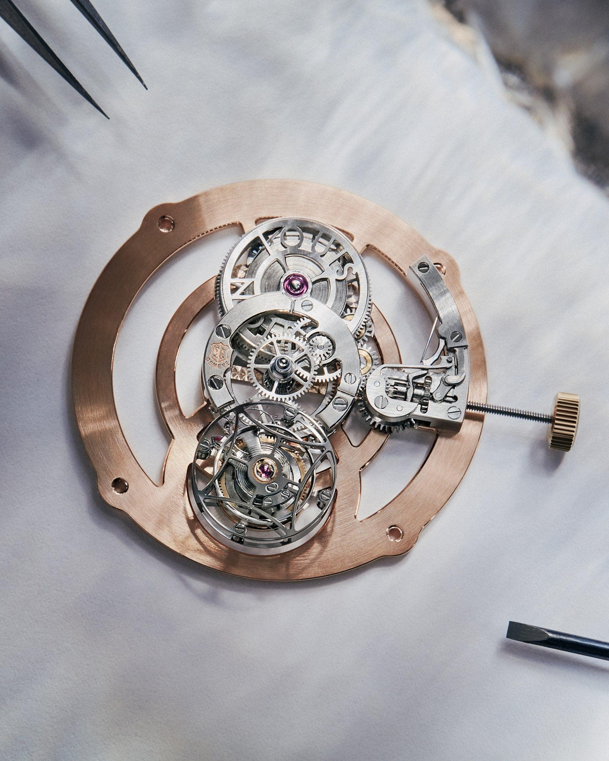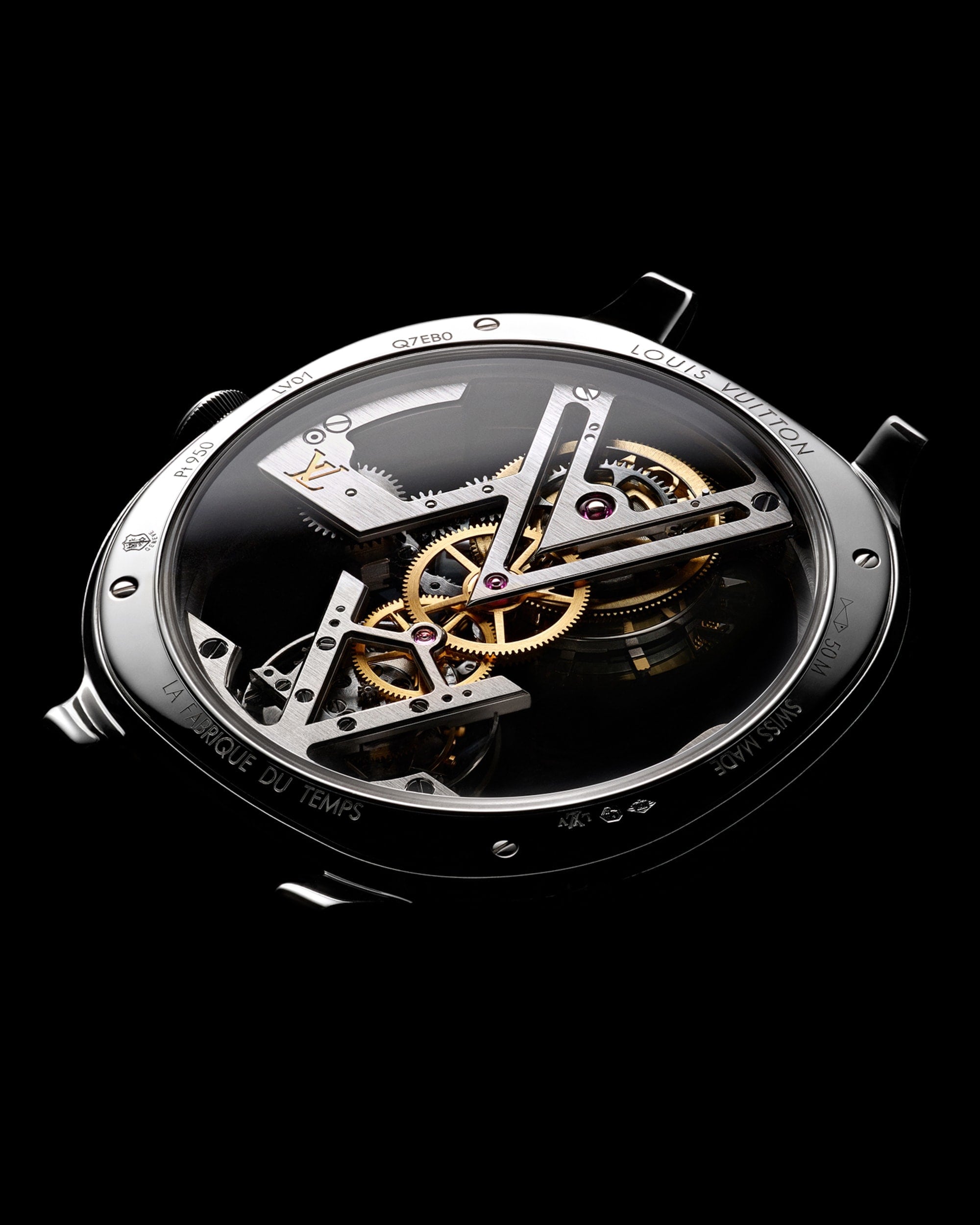 这款独特的腕表与建筑大师 Frank Gehry 携手打造,成为路易威登 La Fabrique du Temps 高级制表工坊有史以来技术最复杂的表盘设计之一。表盘制造需要 250 多个小时的工作时间,创造出绝对透明的表盘。这一富有表现力的玻璃结构让人联想到 Frank Gehry 精心设计的建筑,将目光吸引到印有”日内瓦印记“的飞行陀飞轮机芯的非凡视角。