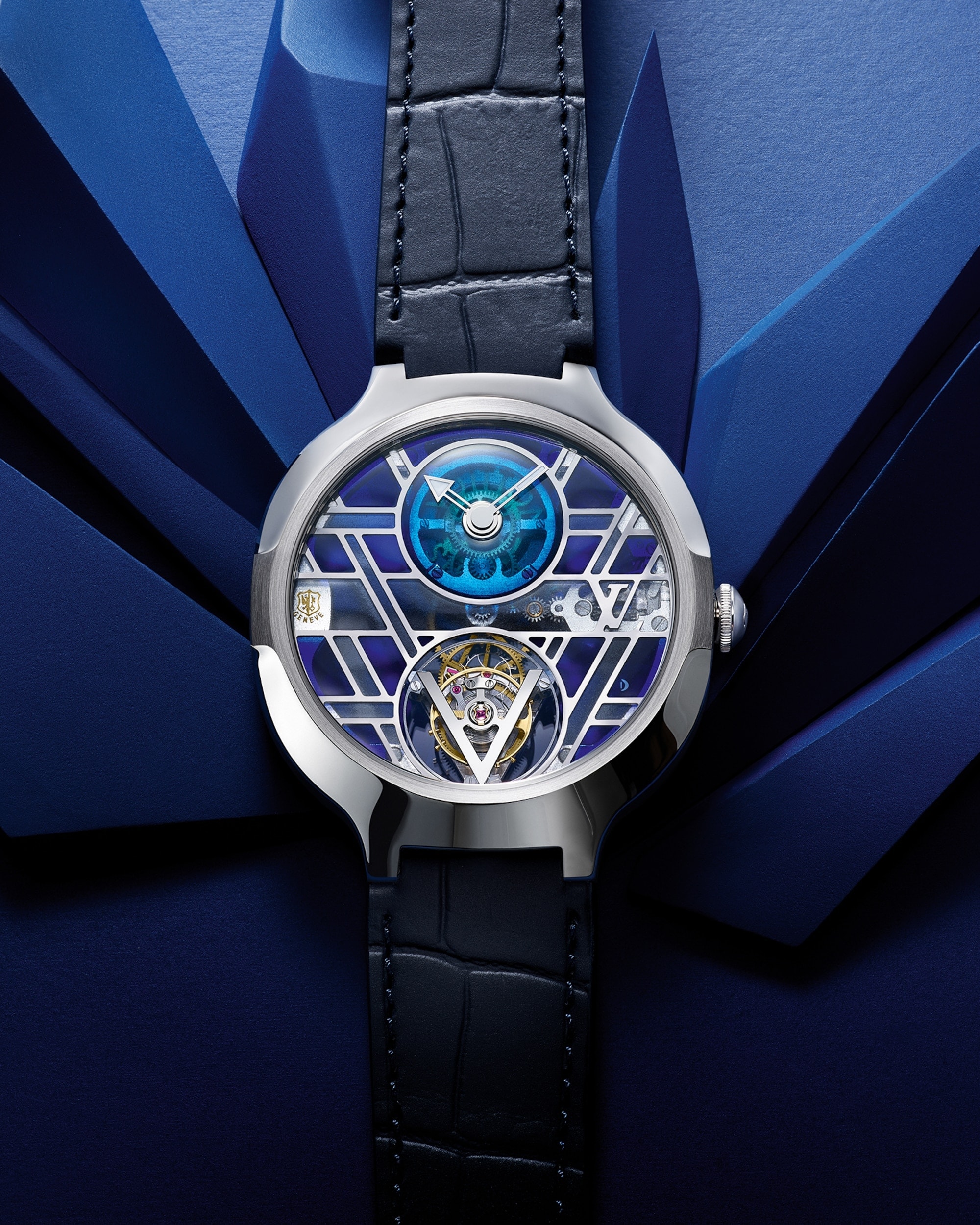 Tambour Moon Tourbillon Volant “Poinçon de Genève”是蓝宝石玻璃表壳系列中首个荣获日内瓦印记的腕表系列。依托路易威登 Fabrique du Temps 高级制表工坊专业工匠的精湛工艺, 今年该系列再添两款全新腕表。短短几年内, 合成蓝宝石的切割和着色工艺已趋成熟。