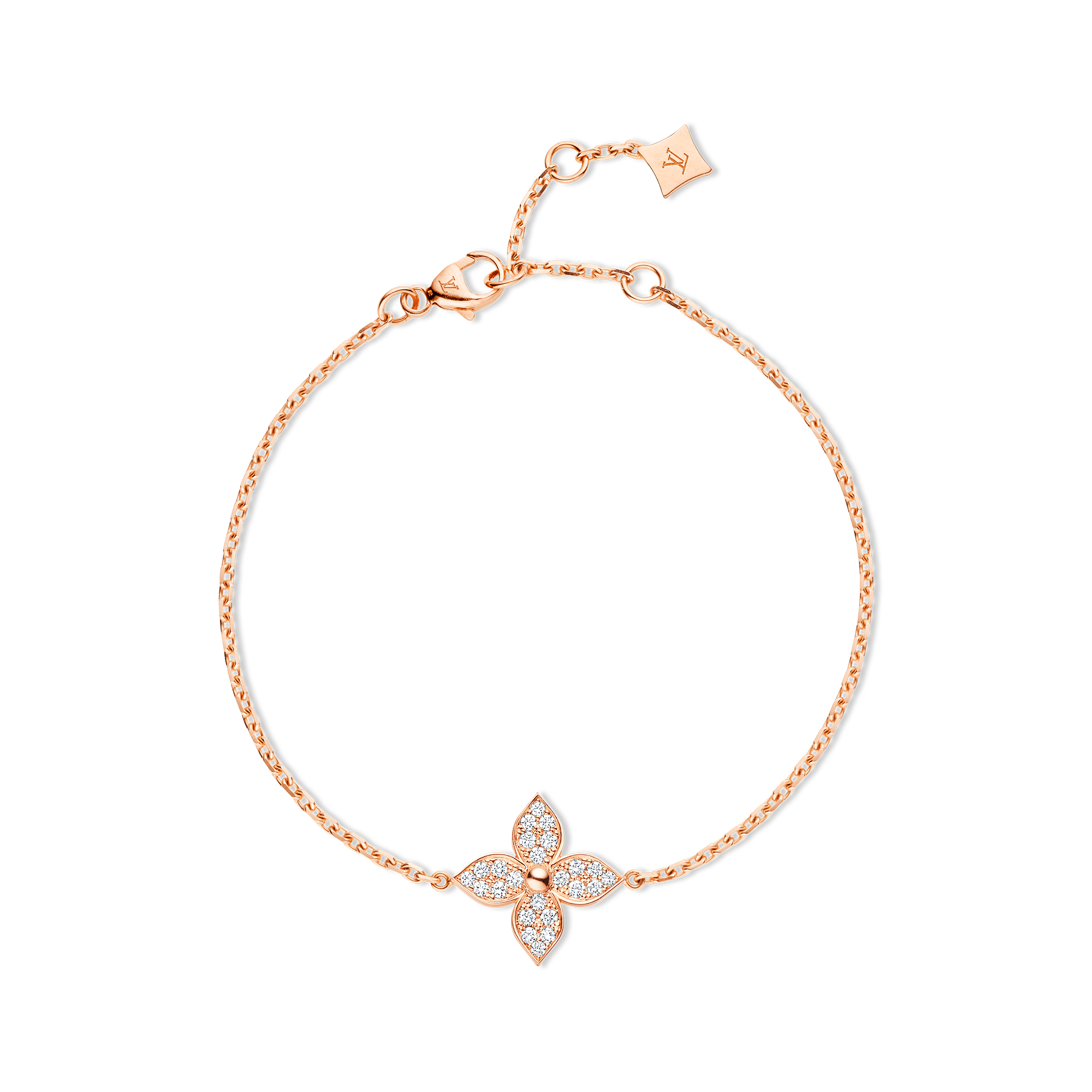 手链臻作凝聚标志性 Monogram 图案的优雅气韵,轻巧缀饰腕部,以镶嵌钻石的细节之处彰显柔美魅力。